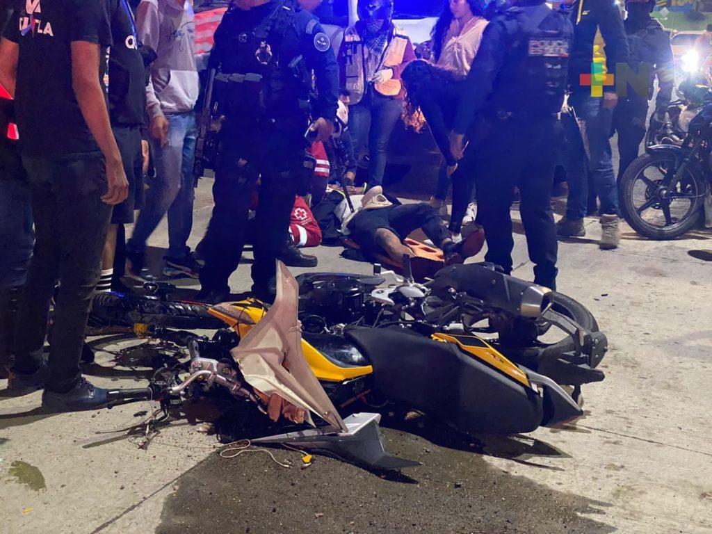 Coatzacoalcos, Ver.- Dos jóvenes repartidores de comida, resultaron lesionados en un aparatoso choque entre dos motocicletas en el cruce de las avenidas Universidad y Las Palmas de Coatzacoalcos.