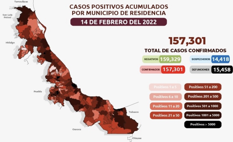 Xalapa, Ver.- Luego de 331 mil 048 estudios practicados, la Secretaría de Salud reporta 157 mil 301 (+ 331 nuevos) casos confirmados de COVID-19 en Veracruz, 4 mil 234 positivos activos y 345 sospechosos actuales.