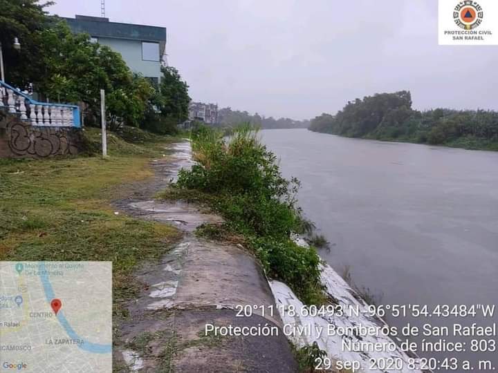 Martínez de la Torre: Reporta de manera preliminar 15 viviendas afectadas por anegación (en verificación) en la colonia Ricardo Flores Magón, por la corriente desbordada del Río Pedernales. De manera preventiva se activó el refugio temporal en la escuela primaria Morelos.