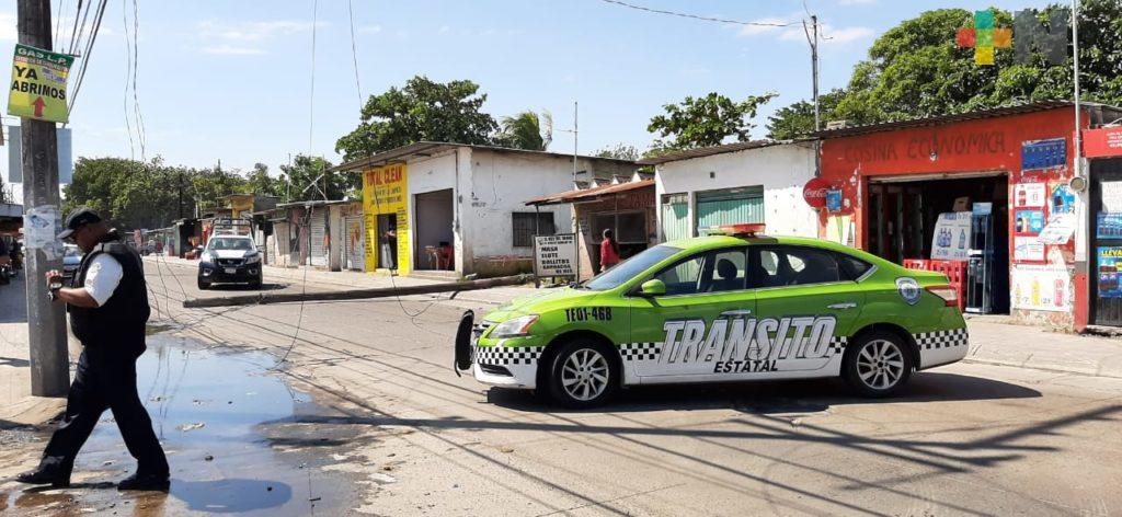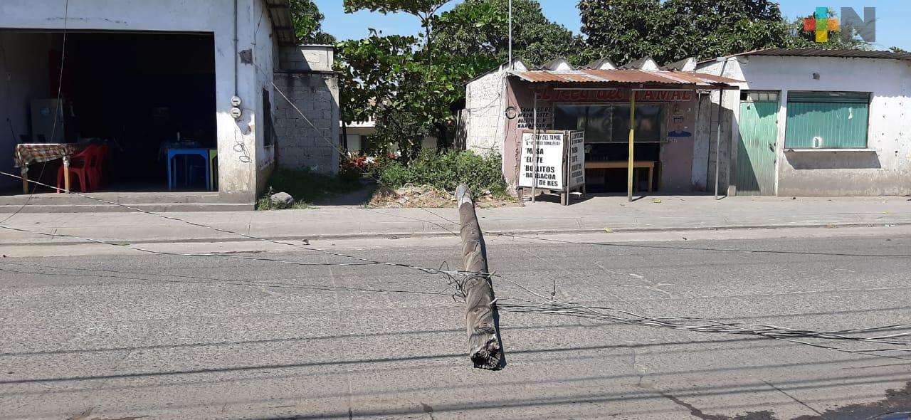 Medellín, Ver.- Las rachas de viento del norte que se registraron durante la mañana, provocaron la caída de un poste de luz ubicado sobre la avenida Independencia de la localidad de El Tejar, municipio de Medellín.