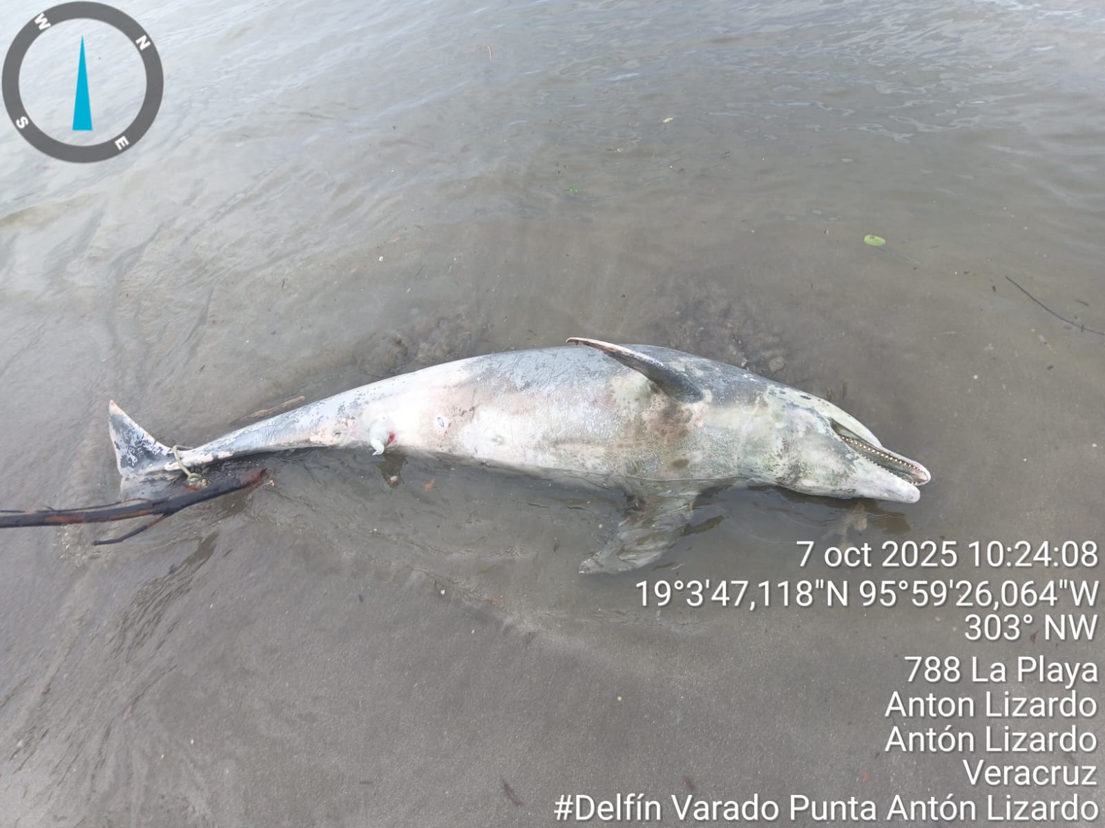 Reportan hallazgo de un delfín muerto en playa de Alvarado