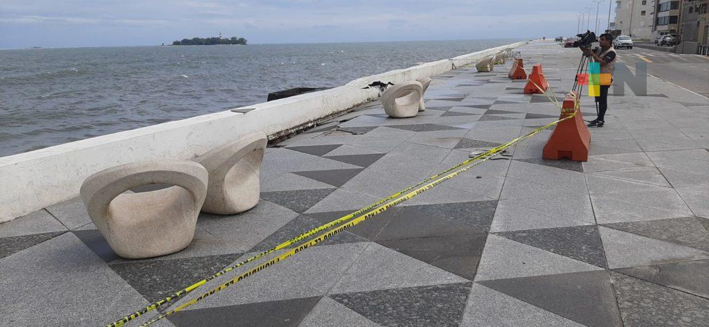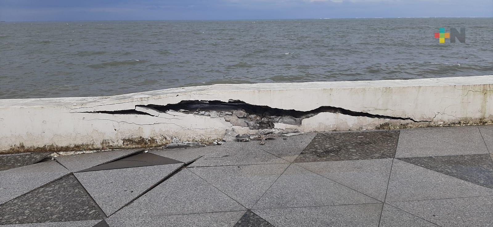 Veracruz, Ver.- Se formó un hundimiento sobre el bulevar Manuel Ávila Camacho a consecuencia del fuerte oleaje.