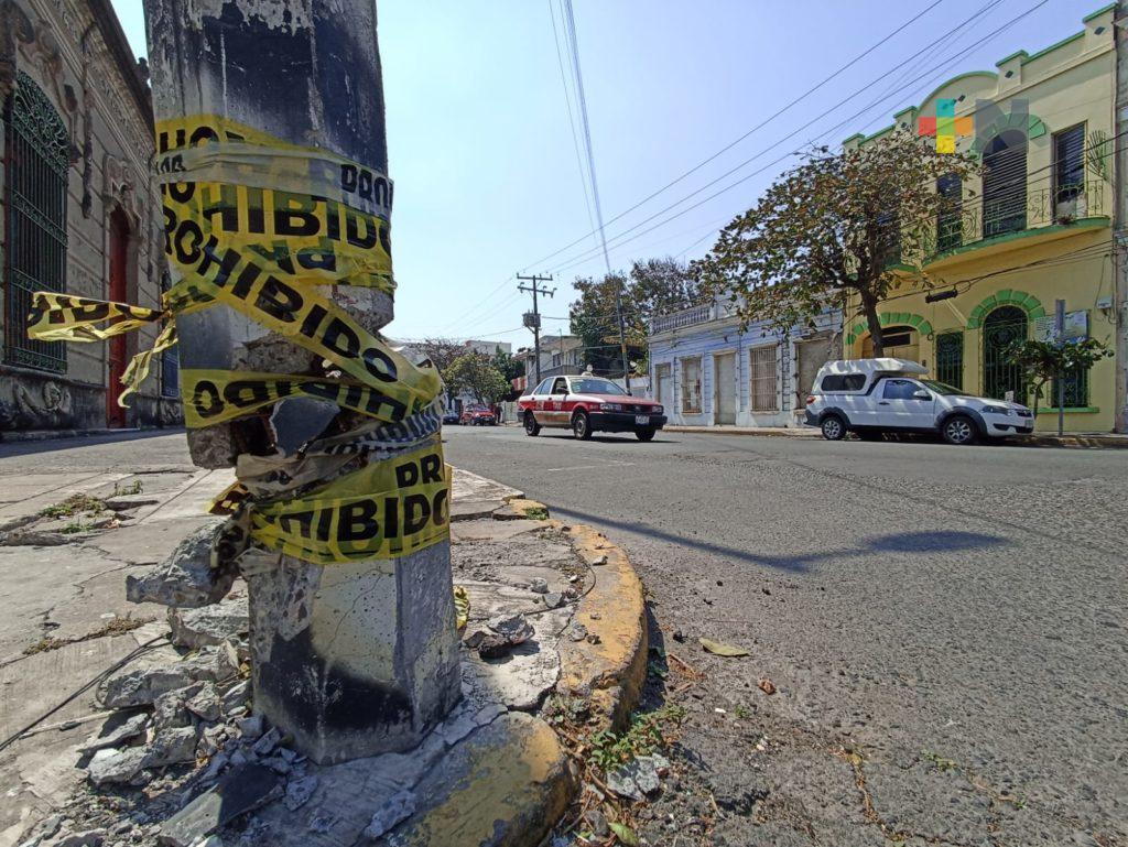 Reportan poste de CFE a punto de caer en centro de la ciudad de Veracruz