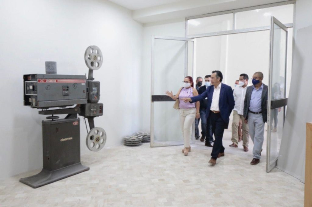 Xalapa, Ver.- El gobernador del estado, Cuitláhuac García Jiménez supervisó los avances en la rehabilitación de espacios culturales en beneficio de las y los veracruzanos, tal es el caso de las Salas Cinematográficas «Claudio Estrada» y «Carmela Rey» en esta capital.