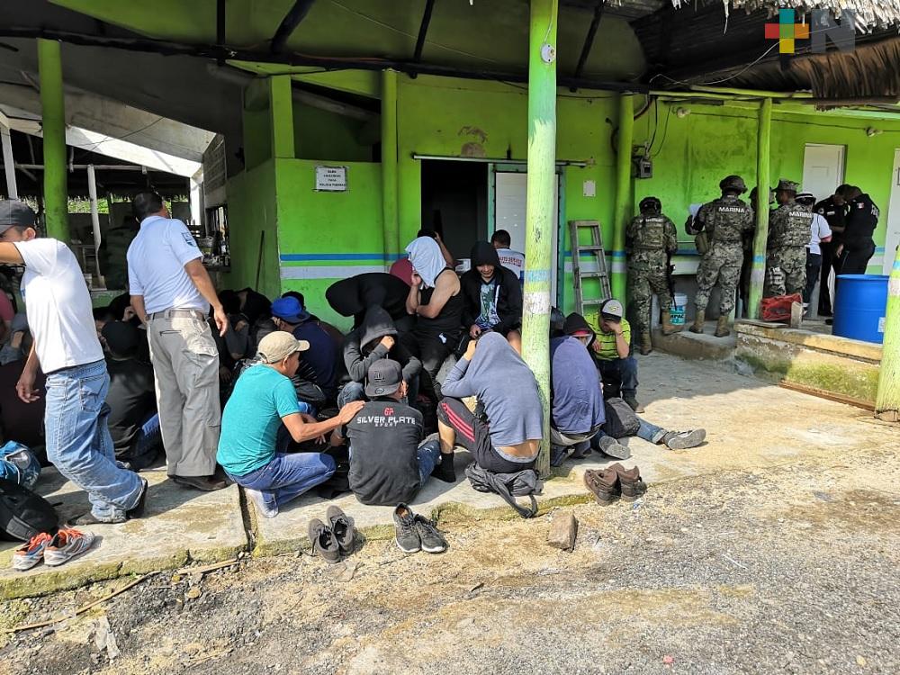 Coatzacoalcos, Ver.- Al menos 58 migrantes fueron rescatados por la Policía Federal en funciones de Guardia Nacional en el kilómetro 19 de la carretera Coatzacoalcos-Villahermosa.