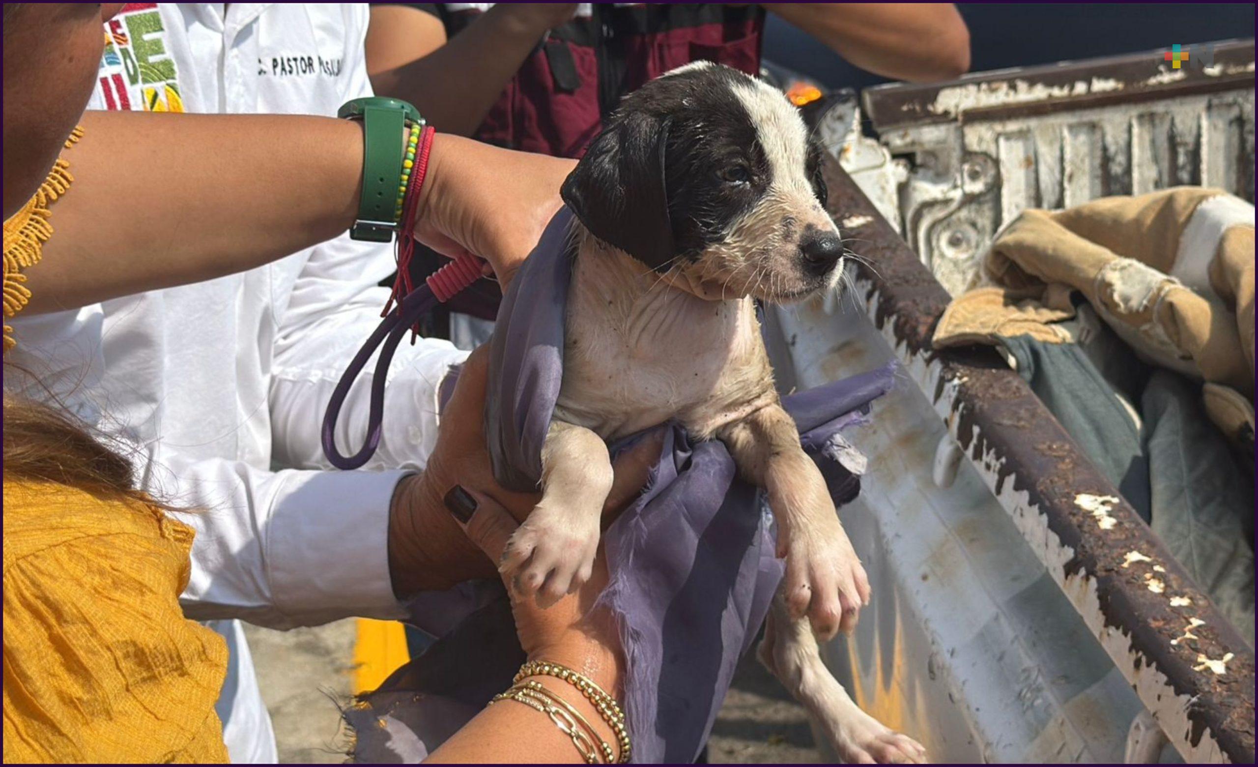 La cachorra quedó bajo resguardo de Protección Civil Municipal.