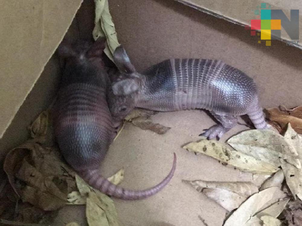 Rescatan crías de armadillo en zona de Los Tuxtlas
