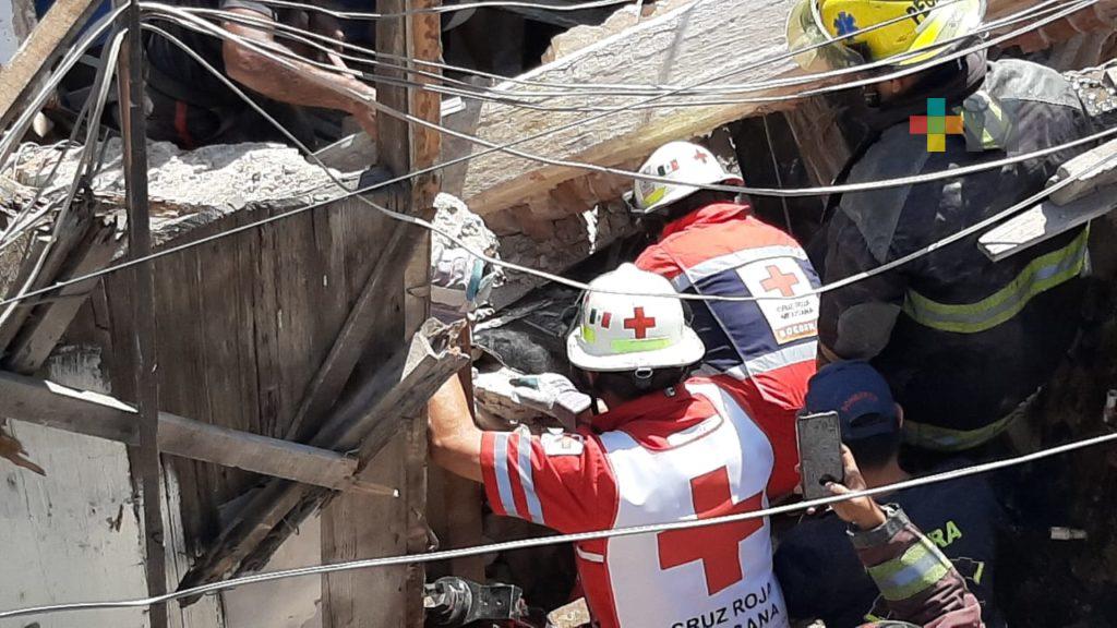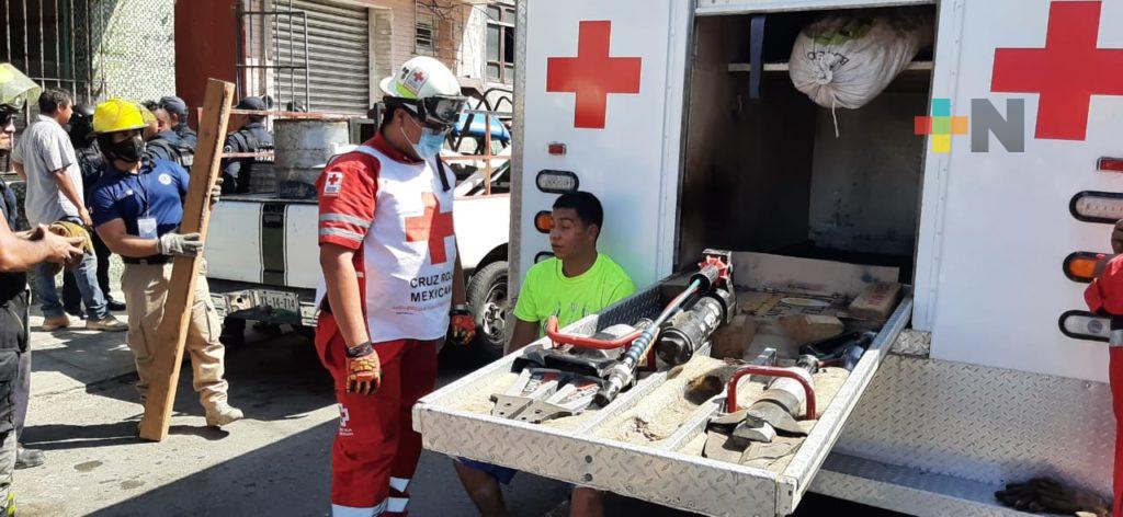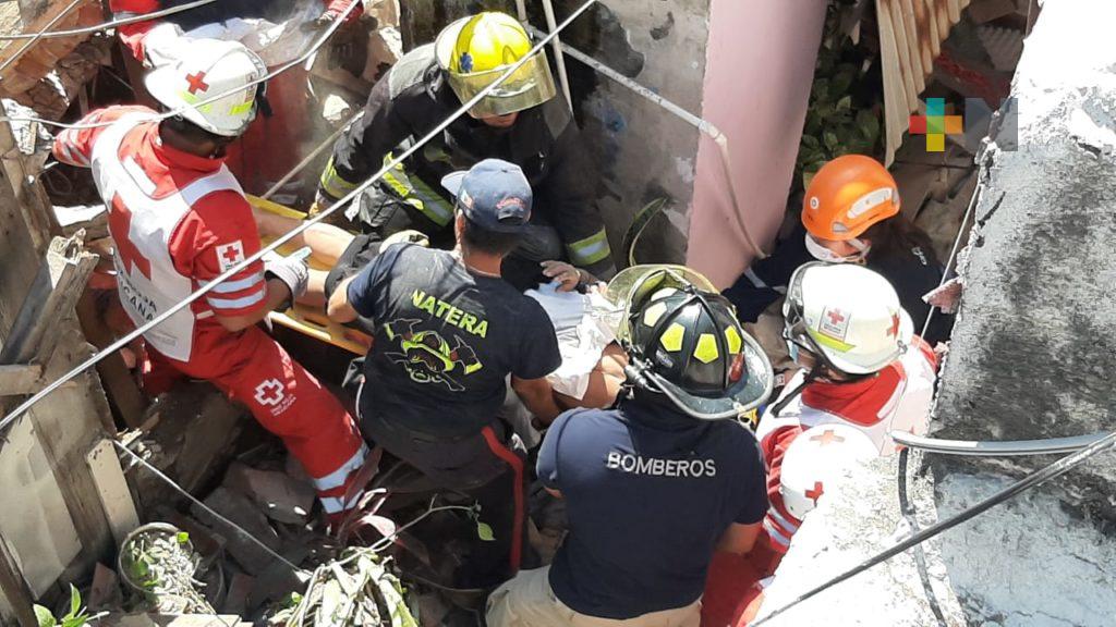 Veracruz, Ver.- Una mujer quedó atrapada entre los escombros de su vivienda que colapsó en una cuartería de la calle Manuel Doblado del centro histórico de Veracruz.