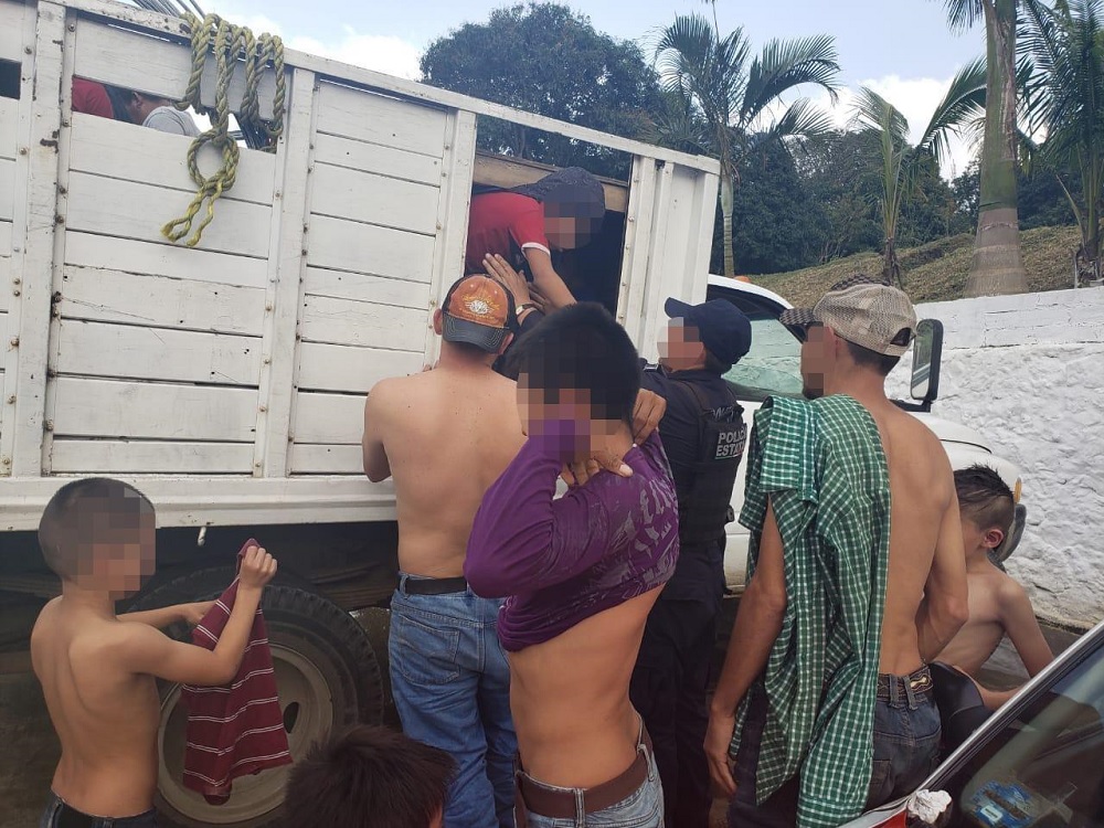 Las personas de distintas nacionalidades eran transportadas en una camioneta marca Dodge modelo RAM 400, con logotipo de la Comisión Federal de Electricidad (CFE) y placas YHE-4592, las cuales, tras consultar con el Registro Público Vehicular (REPUVE) se identificó que no coincidían con el vehículo.