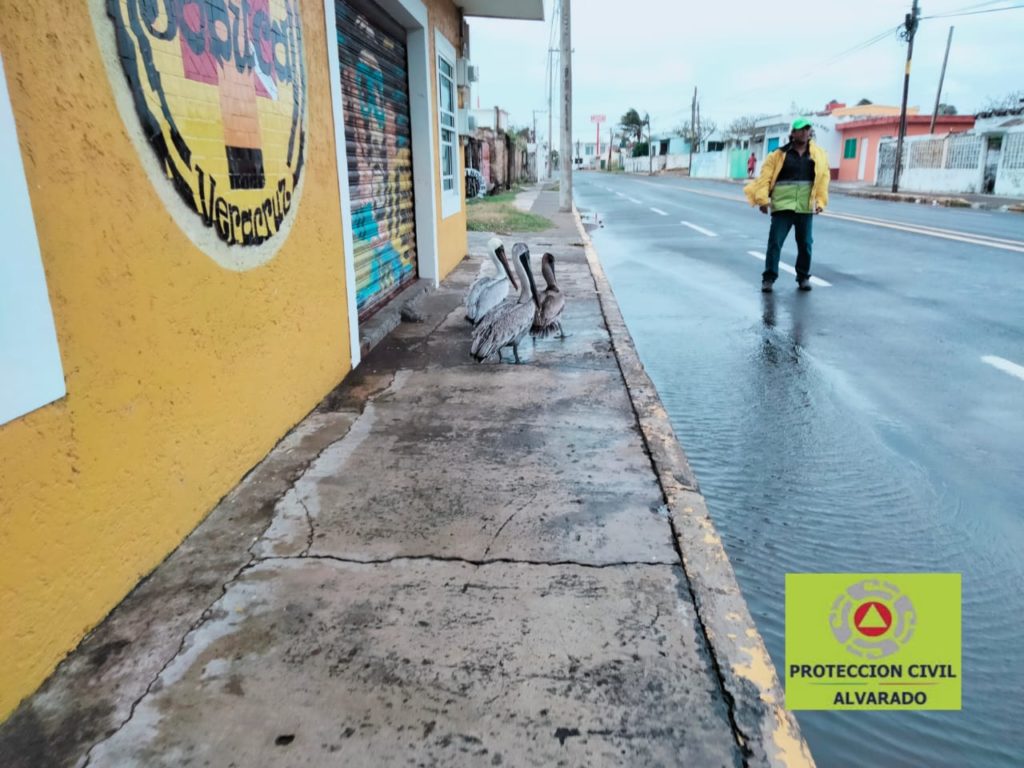 Veracruz, Ver.- Debido a las fuertes rachas de viento, al menos 9 pelicanos se quedaron varados en las calles de la comunidad de Antón Lizardo y sobre la carretera federal 150 que comunica a este lugar.