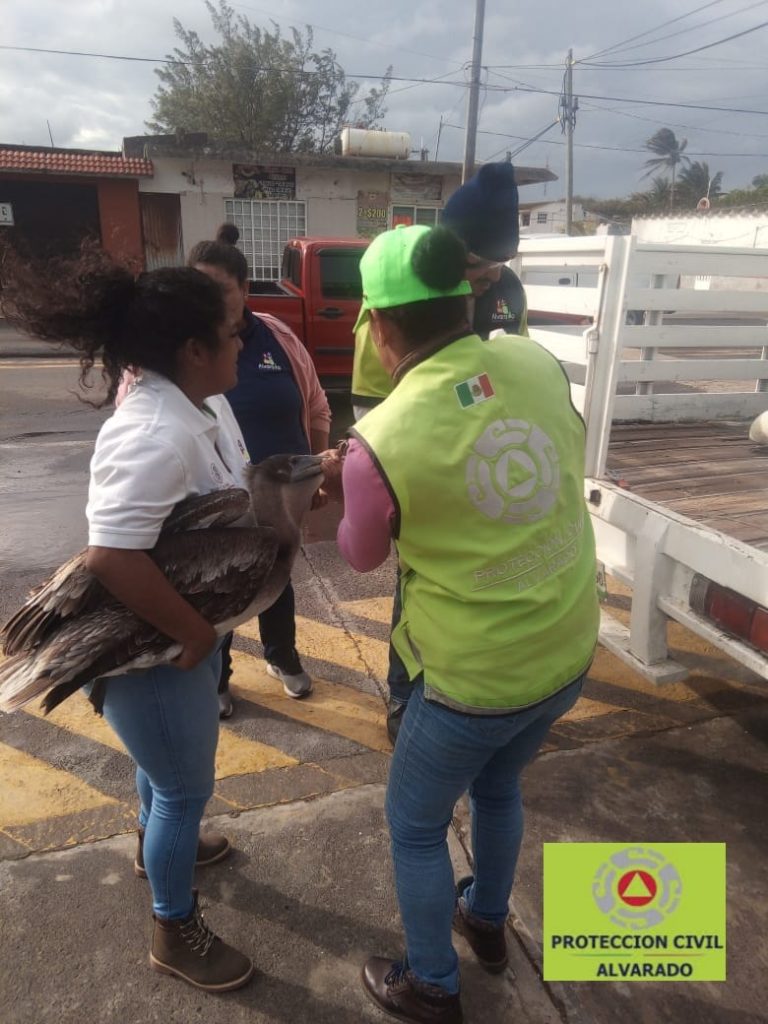 El intenso viento impidió que la parvada emprendiera el vuelo a un lugar seguro, ahora serán liberados en las playas de Antón Lizardo una vez que pasen los efectos del Frente Frío 17.