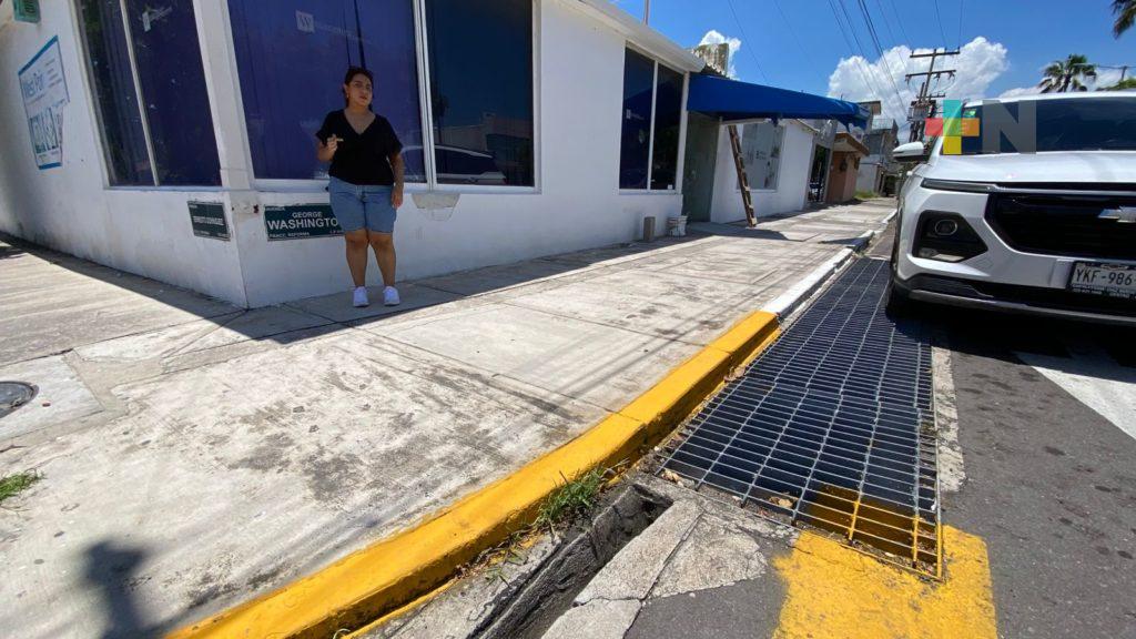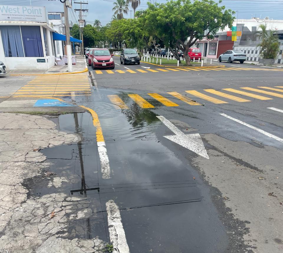 Veracruz, Ver.- Vecinos del fraccionamiento Reforma en la ciudad de Veracruz expusieron el problema de agua acumulada sobre la avenida George Washington.