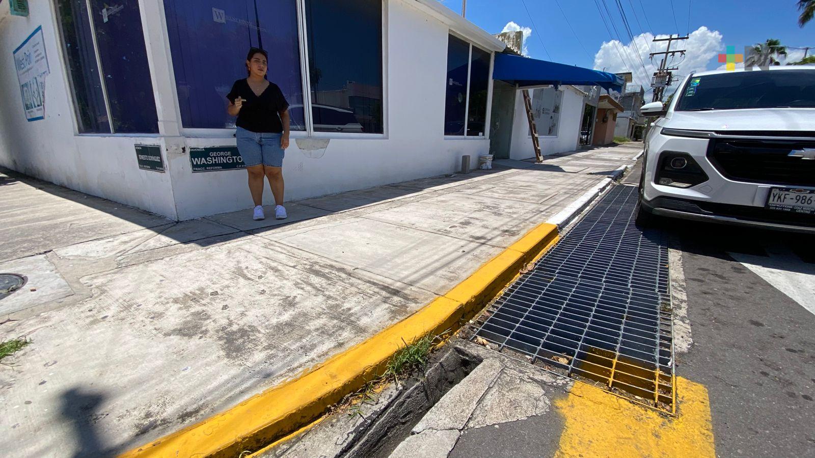 Veracruz, Ver.- Vecinos del fraccionamiento Reforma en la ciudad de Veracruz expusieron el problema de agua acumulada sobre la avenida George Washington.