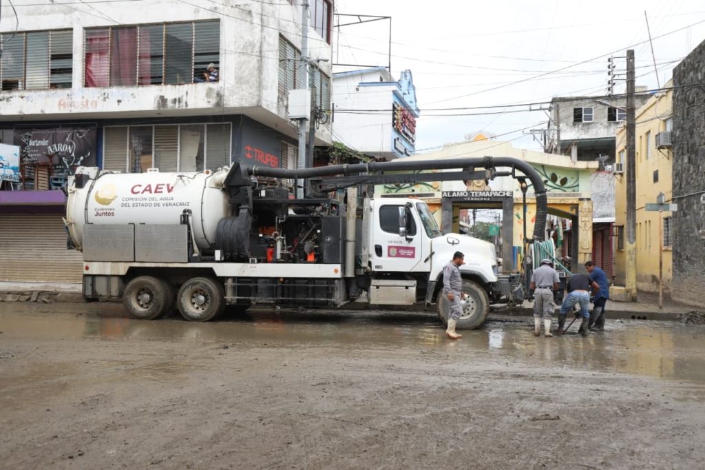 Poza Rica, Ver .- Del 9 al 30 de octubre, el Gobierno de Veracruz, a través de la Comisión del Agua del Estado de Veracruz (CAEV), desplegó en Álamo y Poza Rica a más de 100 trabajadores técnicos y operativos, ocho camiones hidroneumáticos tipo Vactor, nueve camiones cisterna (pipas), un camión de volteo y una retroexcavadora, con el objetivo de restablecer el funcionamiento de los sistemas de drenaje sanitario y pluvial, limpiar calles, retirar escombros y garantizar el suministro de agua a la población afectada por las intensas lluvias e inundaciones en la región.