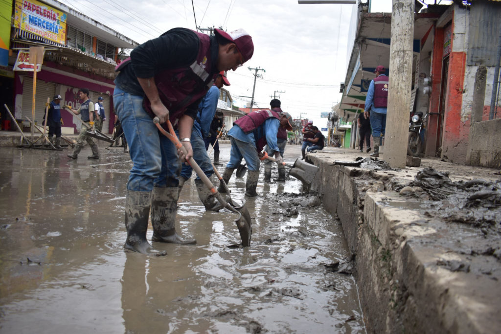 • 9 de octubre: limpieza general, desazolve de drenajes y retiro de escombros y lodo en las calles Brasil, República del Salvador y Honduras, así como en la colonia 27 de Septiembre, con apoyo de cuatro unidades Vactor, una retroexcavadora, un camión de volteo y 50 trabajadores.