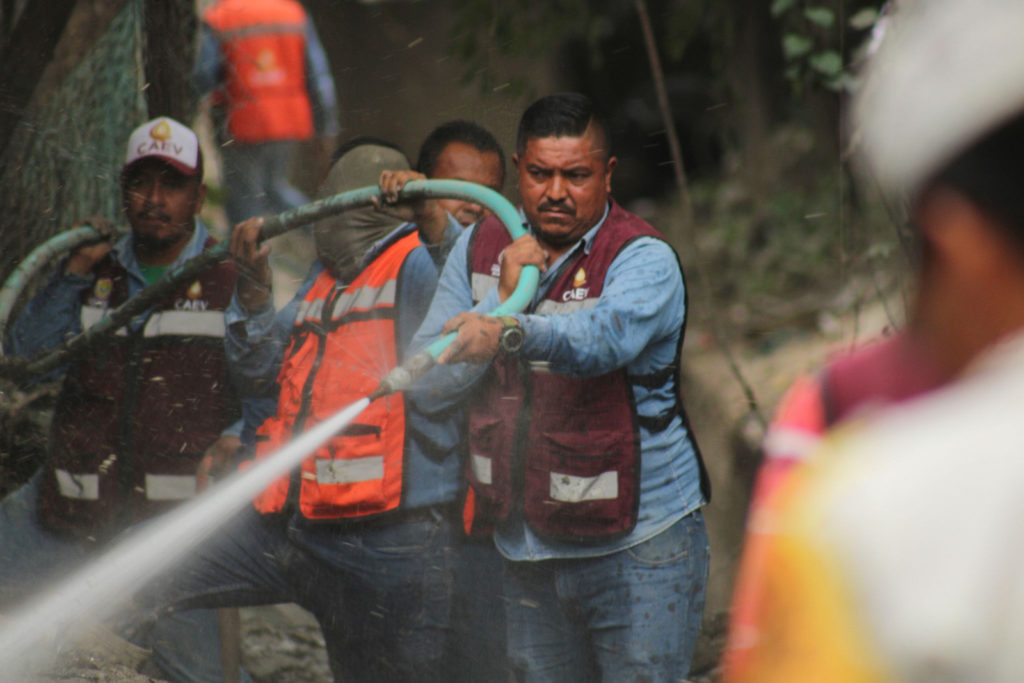 • Del 20 al 23 de octubre: limpieza profunda del canal de desfogue principal junto al río Pantepec, liberando más de siete hectáreas inundadas y reduciendo los niveles de agua en las colonias La Ribera y Los Mangos. También se realizaron labores de limpieza de alcantarillas, succión de agua y abastecimiento con pipas en las colonias La Esperanza, El Vergel y Santa Cruz.