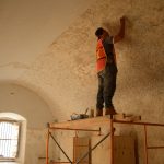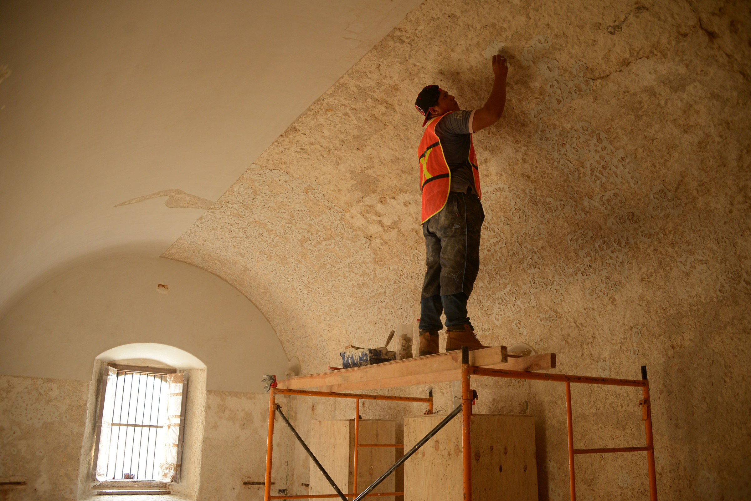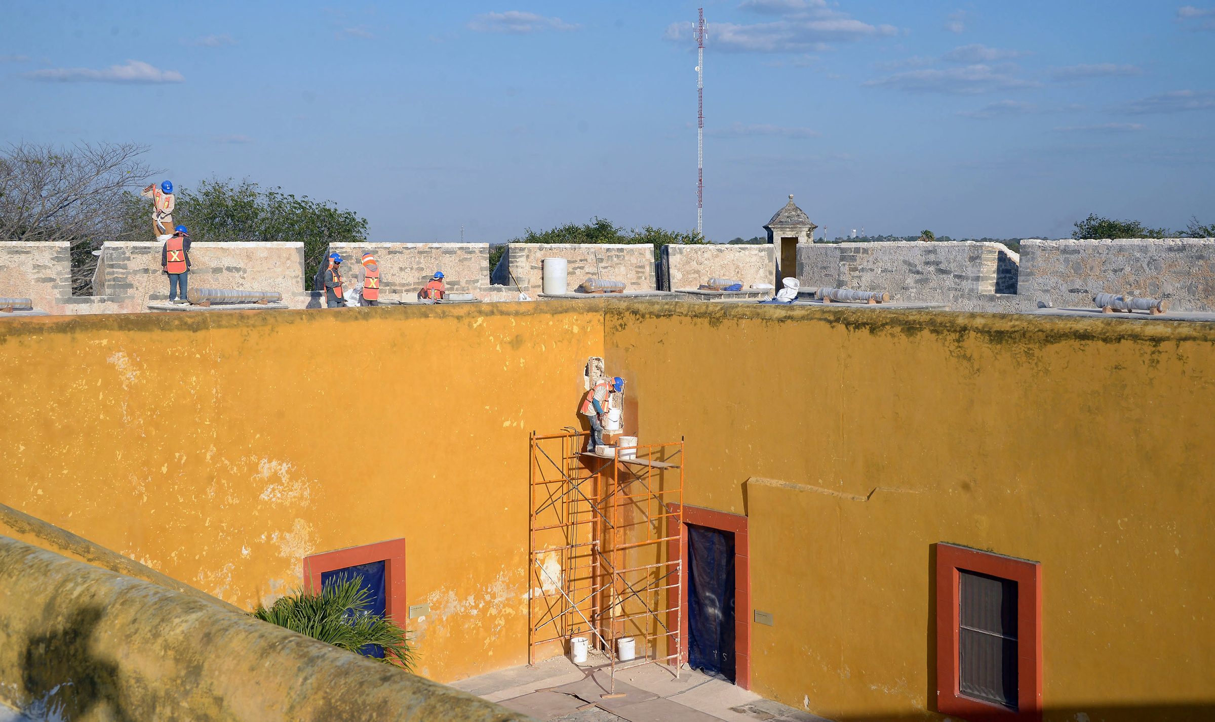 Campeche.- Trabajadores realizan labores de restauración del Museo de Arqueología Maya (MAM), que cerró a inicios de este año para su mantenimiento y que reabrirá a mediados de 2019 con una exhibición que supera las 700 piezas arqueológicas.