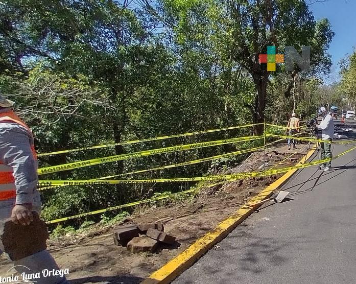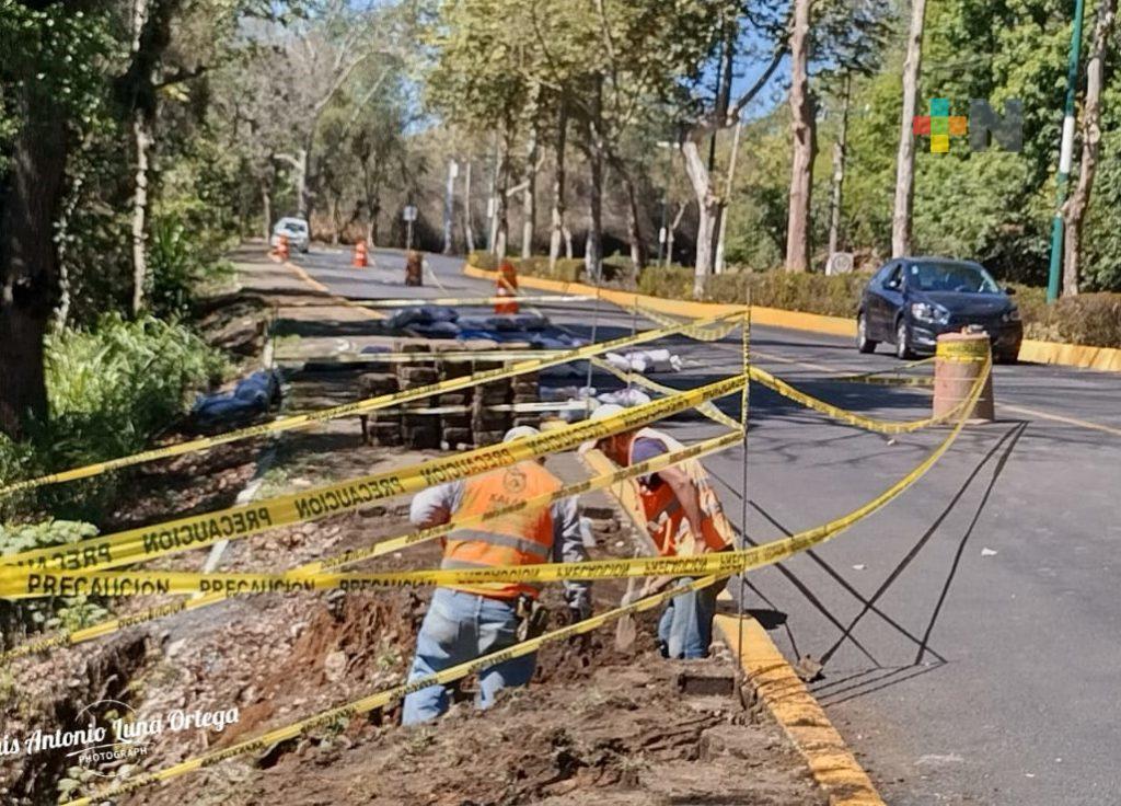 Xalapa, Ver.- Desde el pasado jueves se restringió la circulación en el carril adjunto a la avenida Murillo Vidal, en la banqueta, en el tramo del monumento del político que lleva su nombre y a la altura del museo de ciencia y tecnología “Kaná”, esto por el reblandecimiento de tierra y socavamientos detectados y así garantizar la seguridad de las y los xalapeños que transitan por la zona.