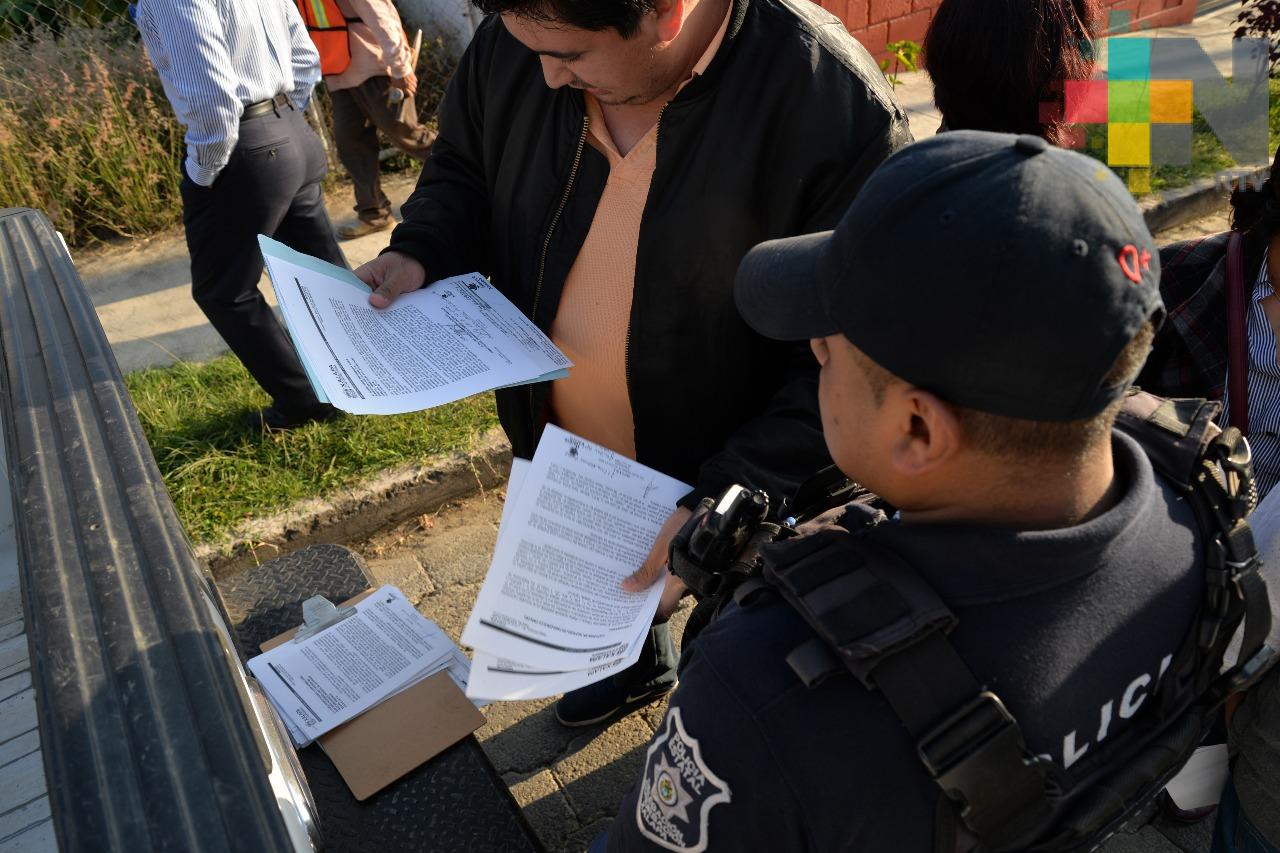 Para tal acción se contó con apoyo de Seguridad Pública del Estado, un representante de la Comisión Estatal de Derechos Humanos de Veracruz (CEDH), y personal del Área Jurídica, de la Dirección de Seguridad Ciudadana y Tránsito Municipal, así como de la Contraloría Interna del Ayuntamiento.