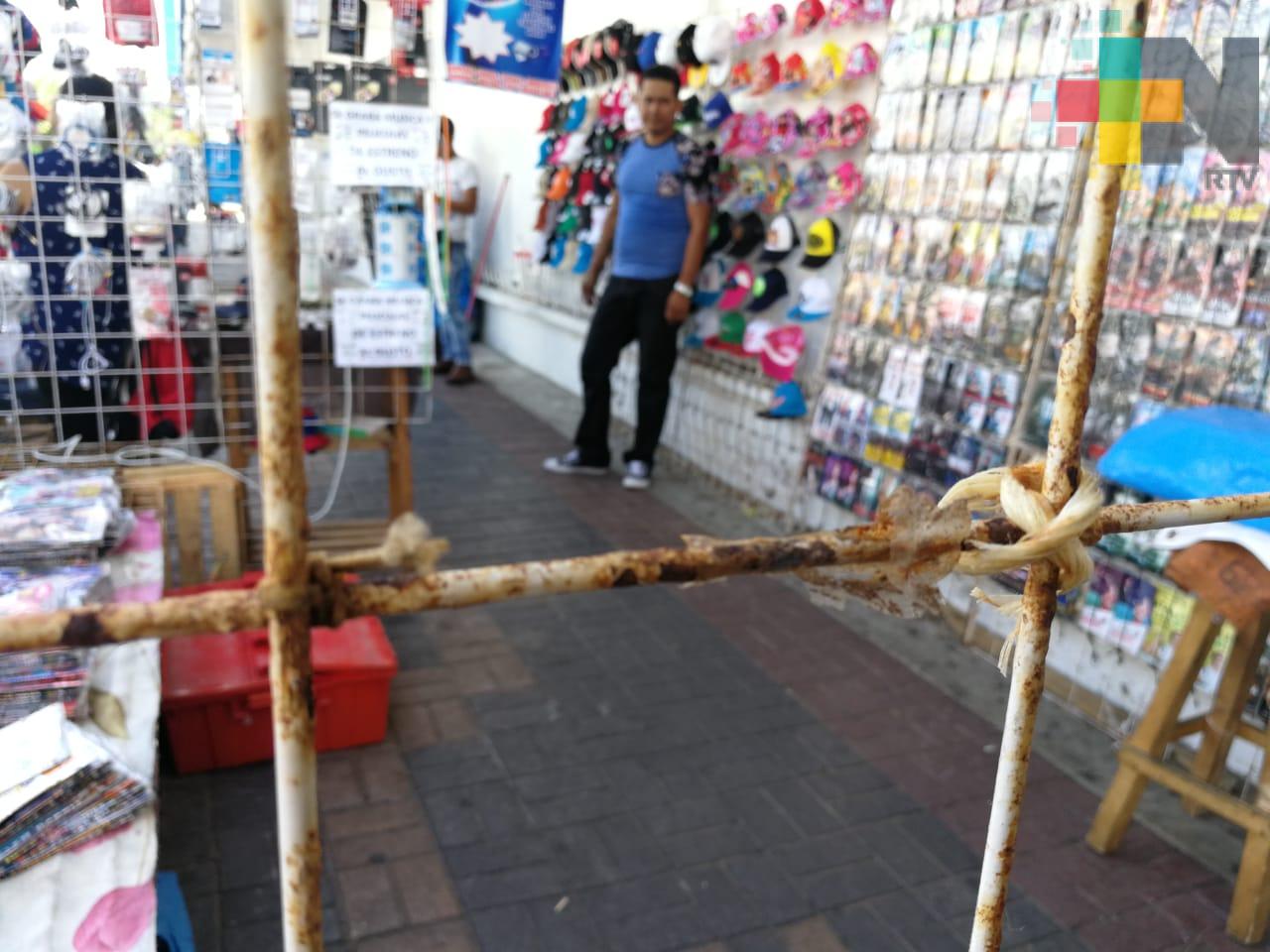 Retiran rejillas que usaban vendedores ambulantes en Coatzacoalcos