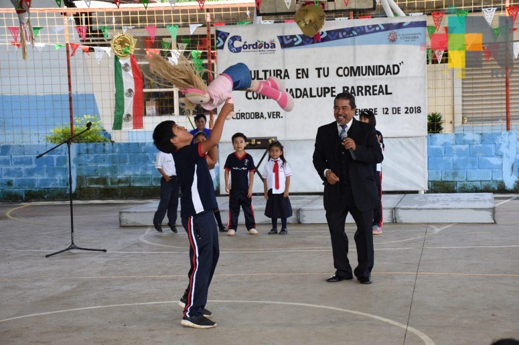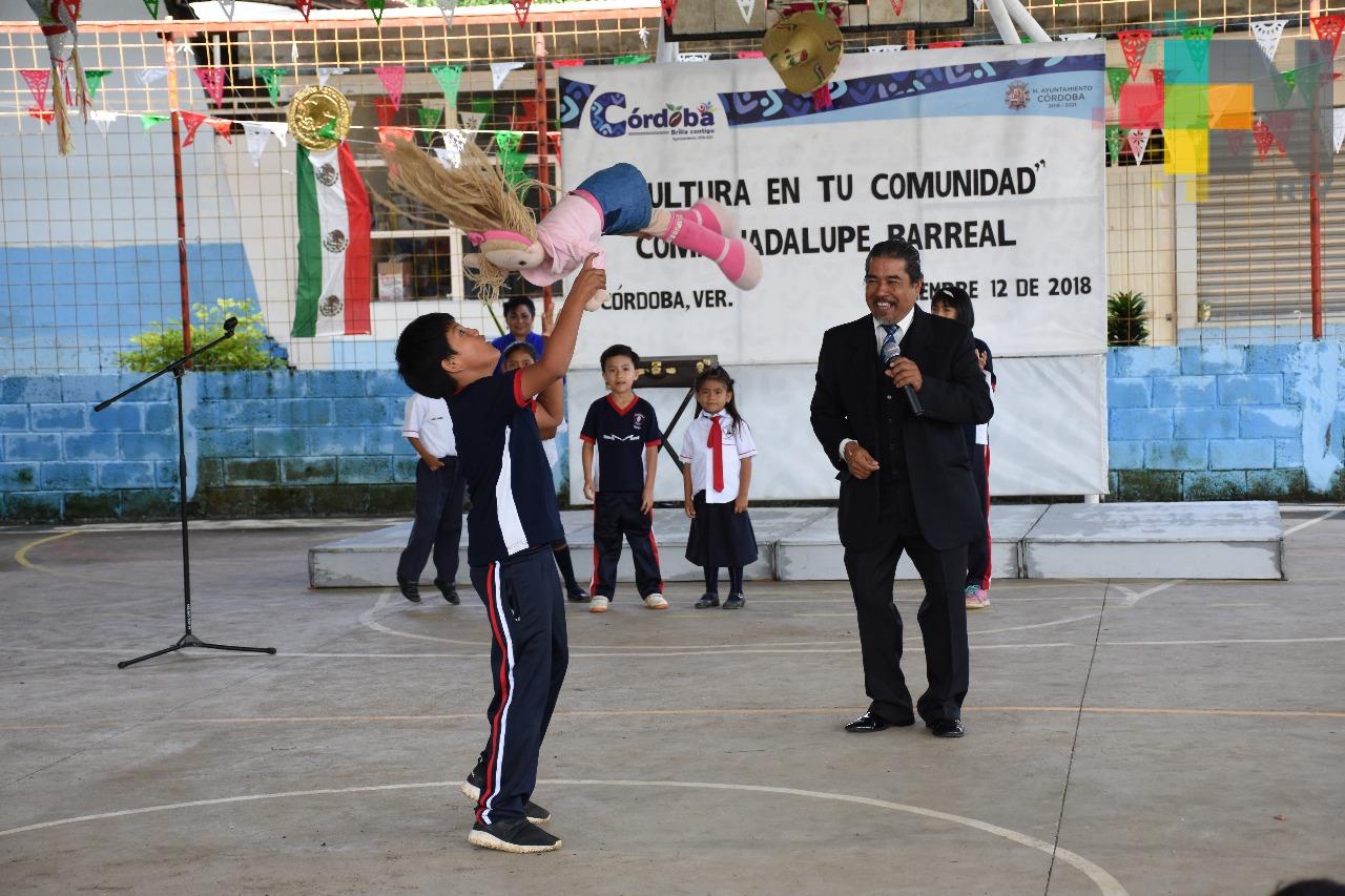 Córdoba, Ver.- La Dirección de Turismo y Cultura del ayuntamiento de Córdoba, a través de la Coordinación de Arte y Cultura, retomó este miércoles el programa “Cultura en tu Comunidad”, mismo que se llevó a cabo en la primaria Miguel Hidalgo de la comunidad Guadalupe Barreal.