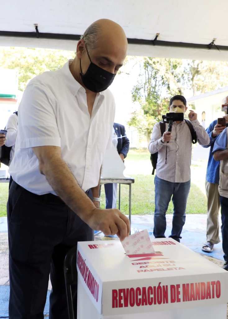 Xalapa, Ver.- La consulta de Revocación de Mandato es una oportunidad histórica para evaluar a los gobernantes y contribuir a que cada vez se tengan mejores autoridades que sirvan a la sociedad y no se sirvan del cargo, afirmó el presidente municipal Ricardo Ahued Bardahuil tras emitir su voto este domingo en la casilla instalada en el fraccionamiento Las Ánimas.