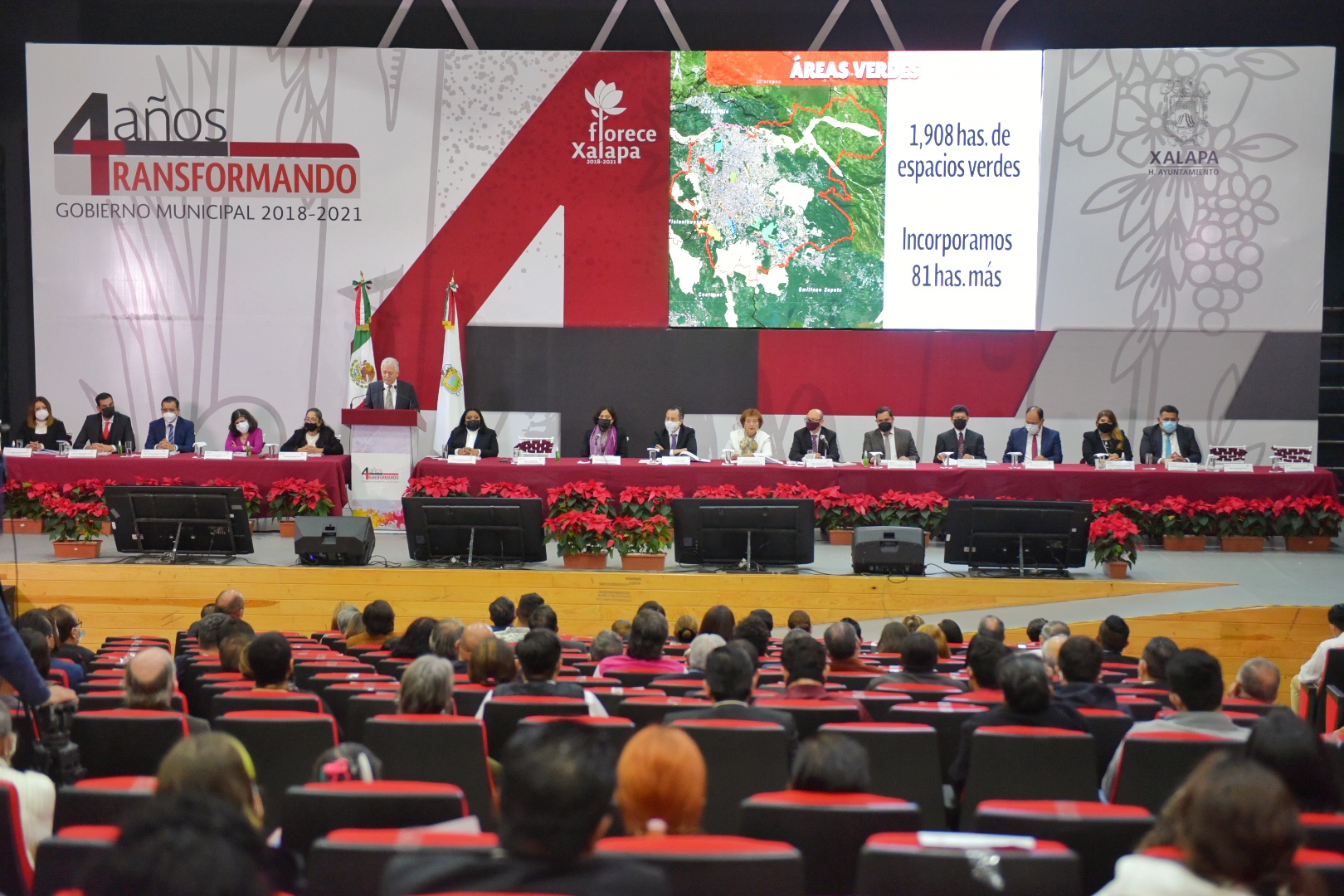 Xalapa, Ver.- El presidente municipal de Xalapa, Hipólito Rodríguez Herrero rindió su cuarto y último informe de labores acompañado del gobernador Cuitláhuac García Jiménez.