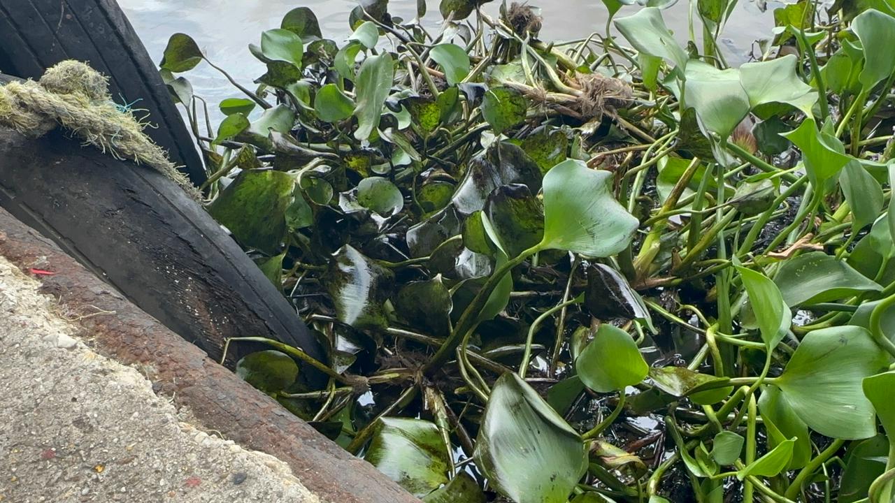 Coatzacoalcos, Ver.- Lirio acuático que descendió por el río Coatzacoalcos recaló en el paso de lanchas lleno de aceite generando un olor a hidrocarburo que incomodó a la población cercana.