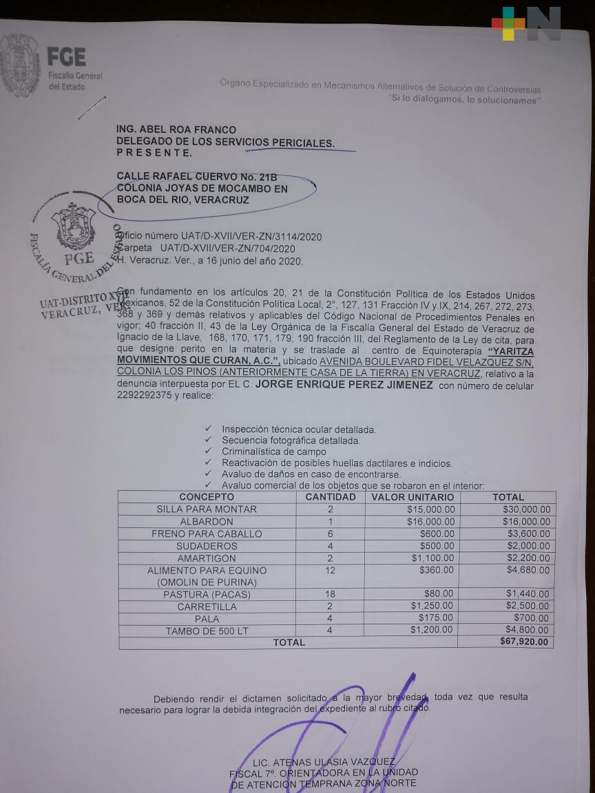 Esta vez los ladrones se llevaron el alimento que había sido donado para los caballos, así como sillas de montar y equipo que es utilizado para brindar la equinoterapia, dejando pérdidas por casi 70 mil pesos.