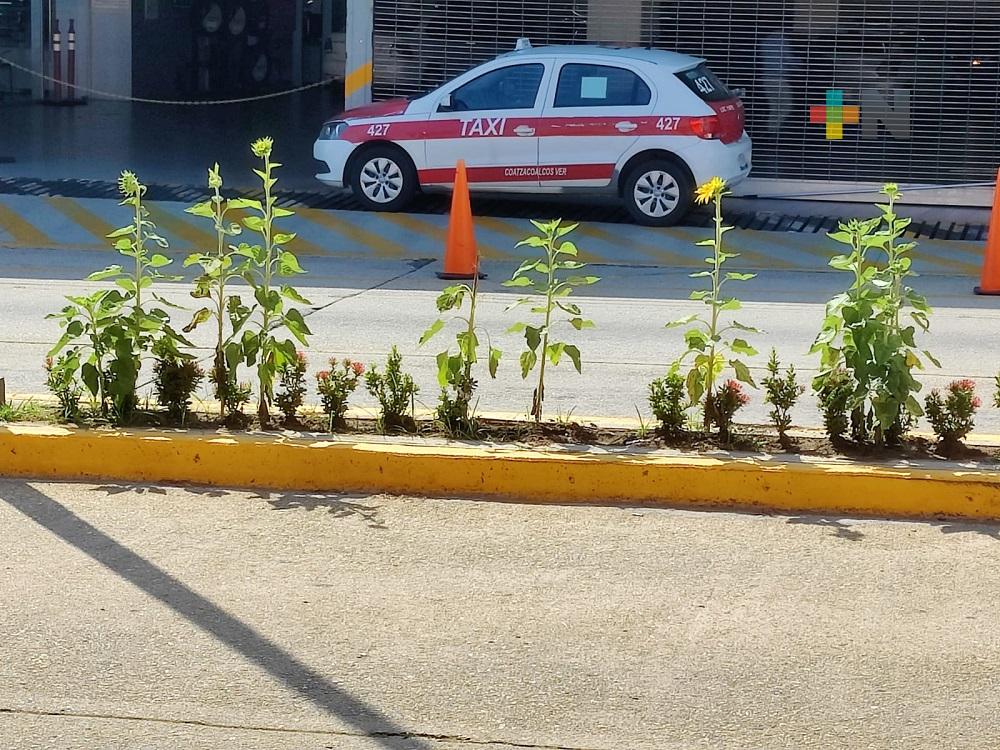 Roban girasoles plantados en camellones de Coatzacoalcos