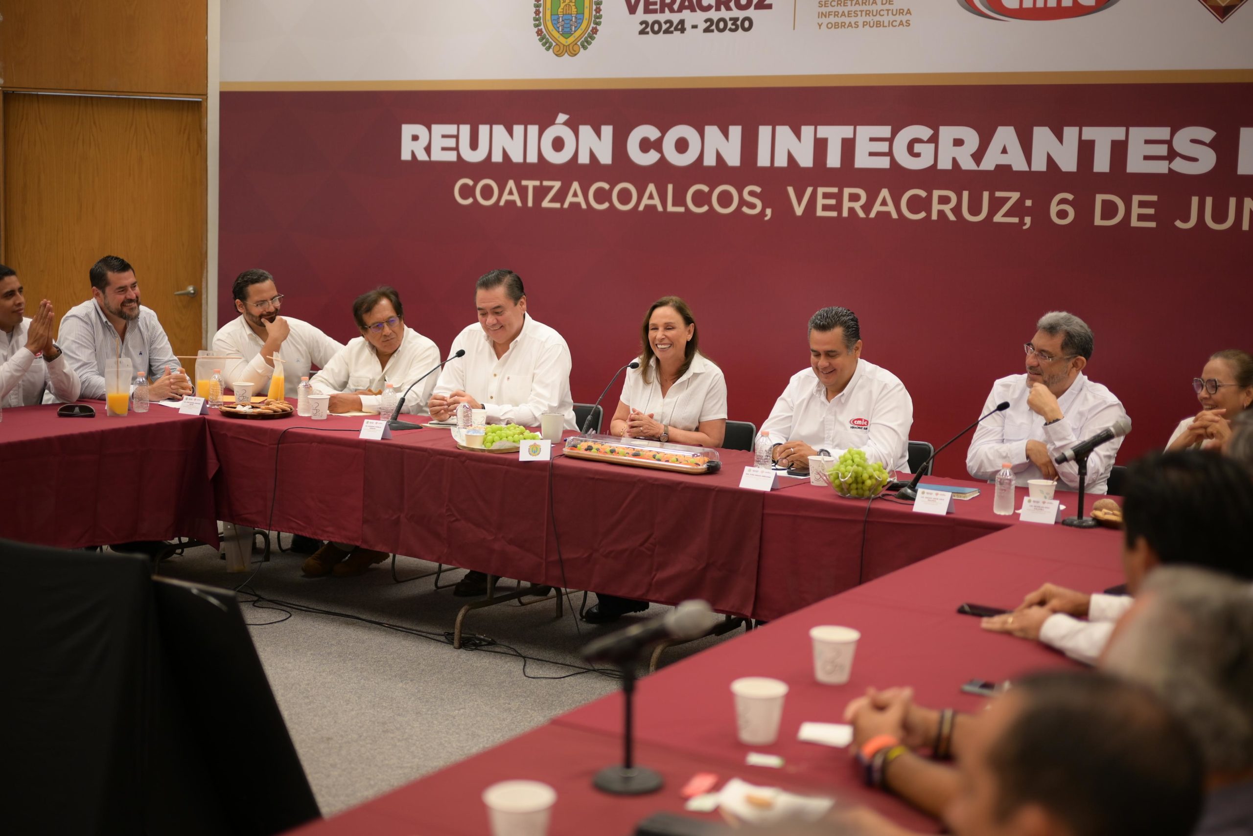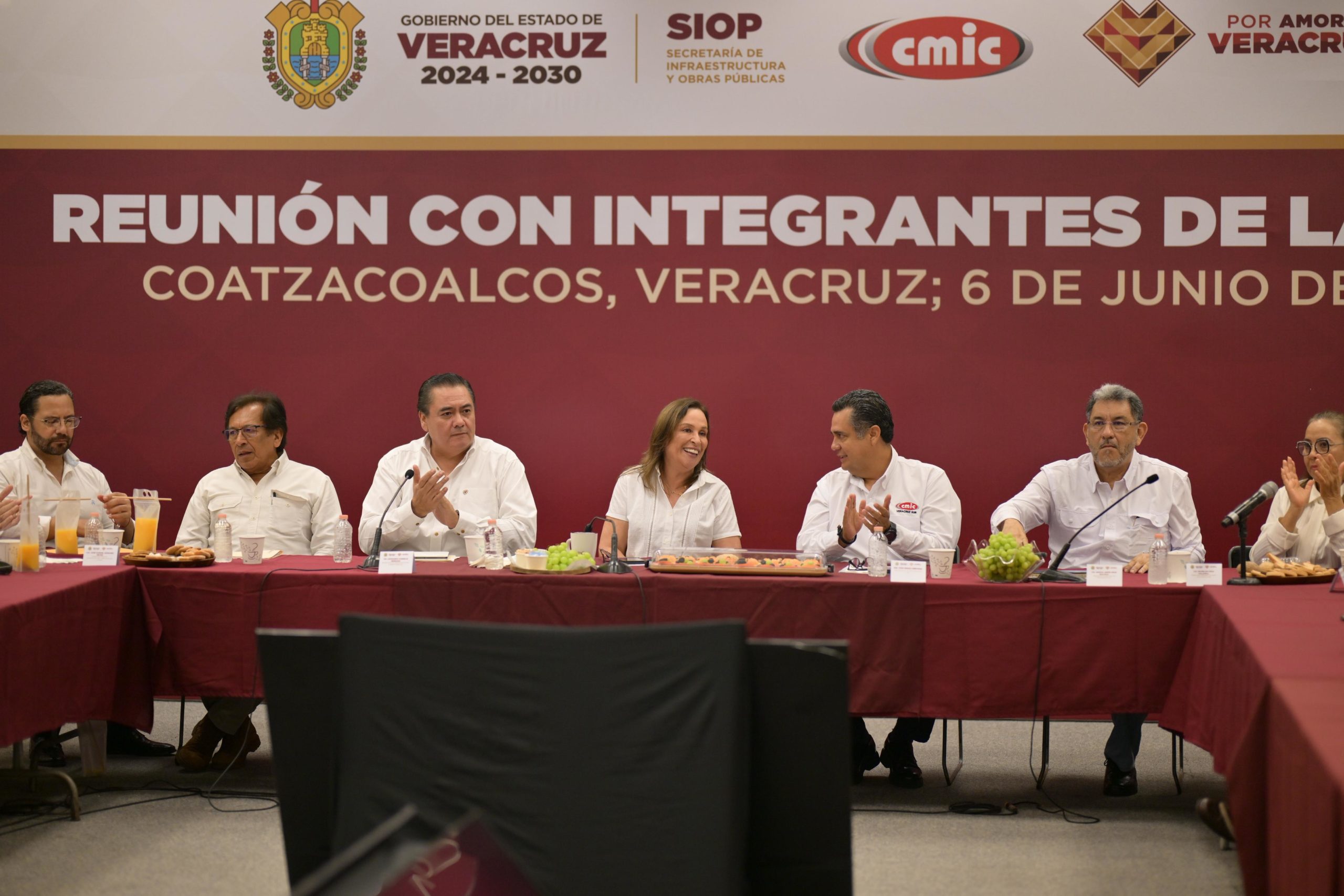 Durante la primera de varias reuniones con representantes de la Cámara Mexicana de la Industria de la Construcción (CMIC) anunció la ejecución de proyectos estratégicos, como el malecón de Coatzacoalcos, el puente Coatzacoalcos I y la carretera Isla–Santiago Tuxtla; reiteró su respaldo a las constructoras veracruzanas, con base en criterios de eficiencia y responsabilidad.