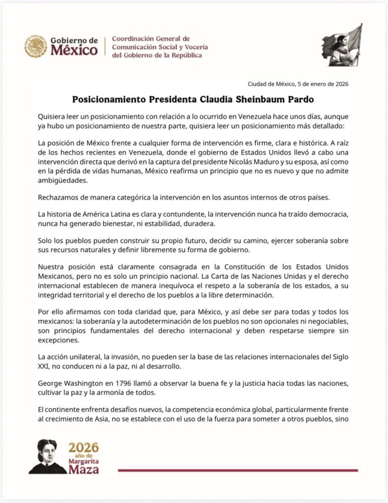 Redacción.- La gobernadora de Veracruz, Rocío Nahle García, expresó a través de sus redes sociales su respaldo total a la presidenta de México, Claudia Sheinbaum Pardo, ante la invasión realizada por fuerzas estadounidenses en Venezuela y las declaraciones emitidas por el presidente Donald Trump.