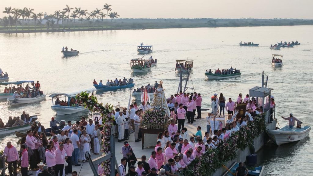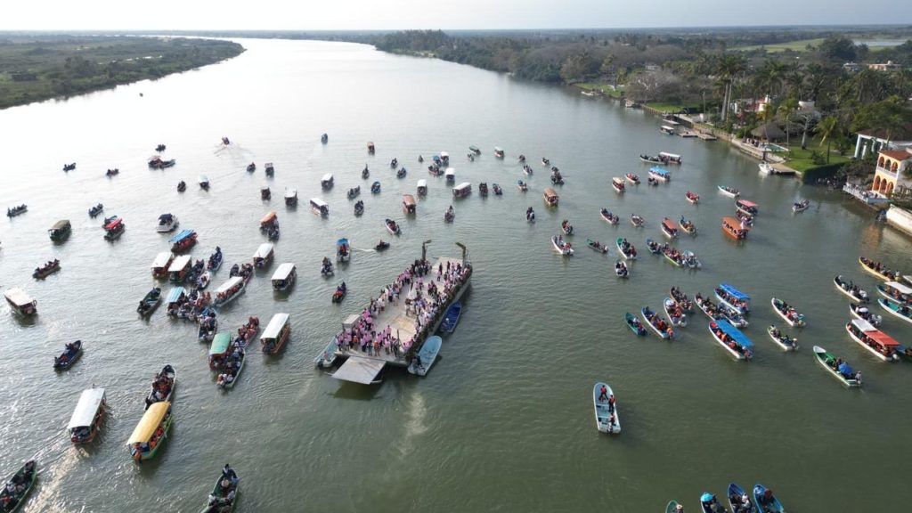 Tlacotalpan Ver.– La gobernadora Rocío Nahle García presenció, desde el Centro Cultural del Sotavento, el tradicional recorrido de la Virgen de La Candelaria por el río de Las Mariposas, uno de los rituales religiosos y culturales más emblemáticos del estado y símbolo vivo de la identidad tlacotalpeña.