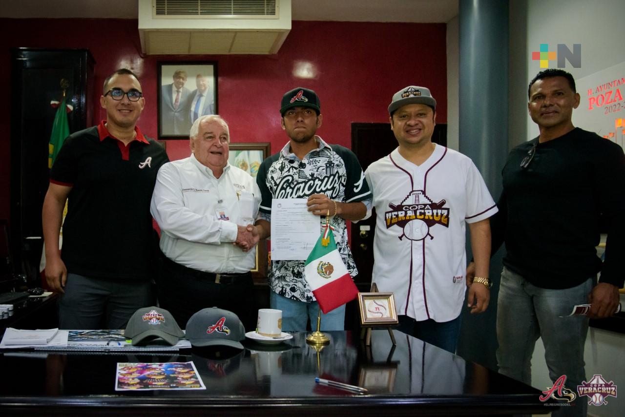 • · Tras mostrar su talento con Pulpos de Poza Rica en la Copa Veracruz, el club de Liga Mexicana firmó al receptor hijo de Rogelio Cobos, quien fuera pelotero estelar en los años noventas.