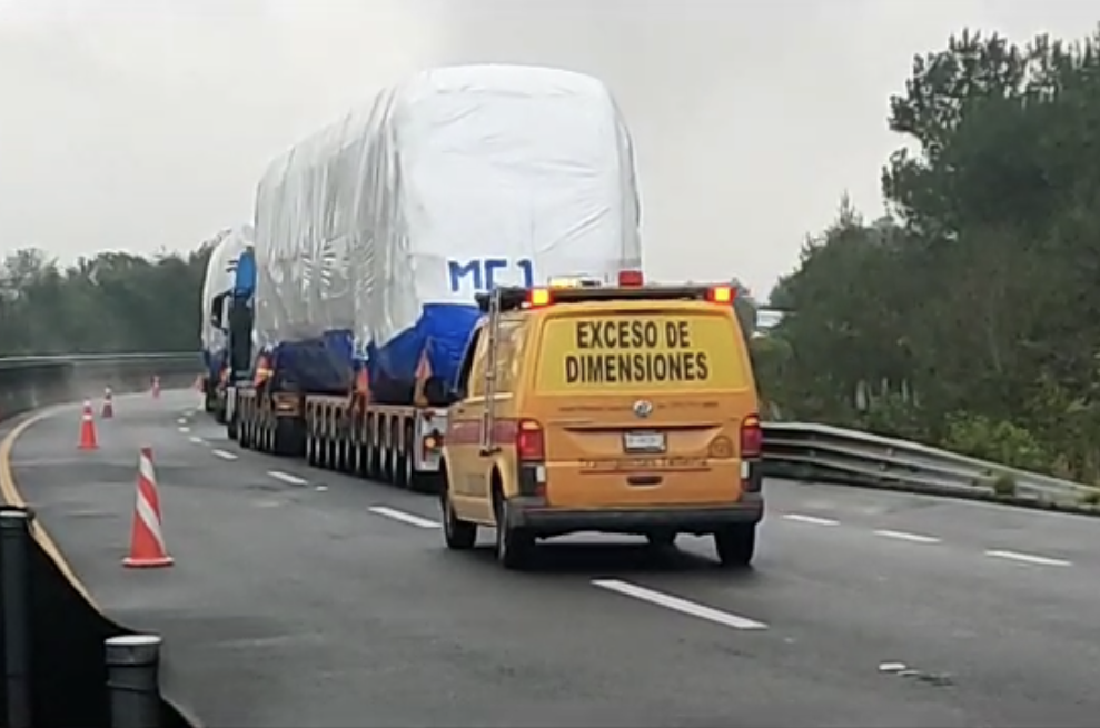 Las Vigas de Ramírez, Ver.- Procedentes de la planta Alstom en Ciudad Sahagún, Hidalgo, esta tarde cruzaron por territorio veracruzano el convoy de vagones para el tren maya, custodiados por elementos de la guardia nacional.