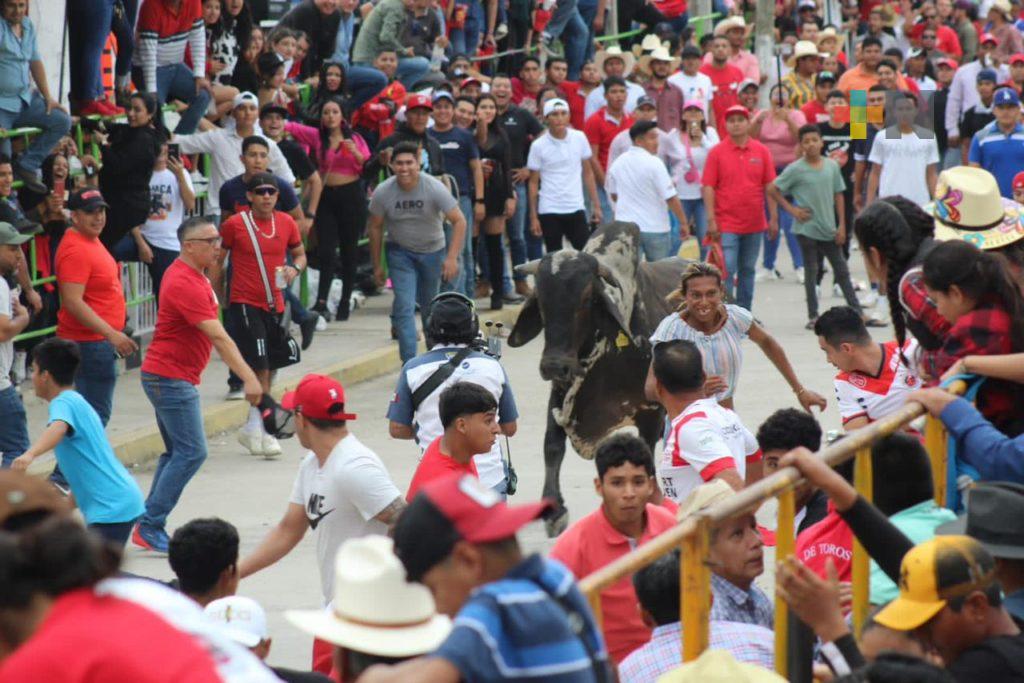Chacaltianguis, Ver.- Ni la lluvia detuvo la suelta de toros en Chacaltianguis, en las fiestas patronales del Santo Padre Jesús, aunque los presentes llevaron o compraron paraguas, y a los jóvenes no les importó mojarse, y hasta se volvió parte de la diversión.
