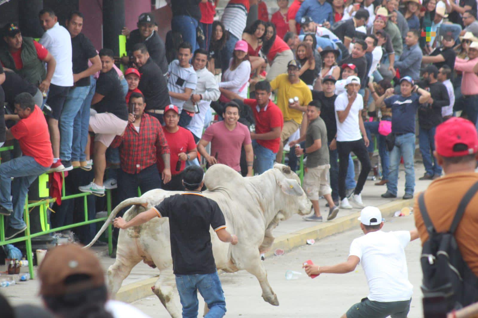 Chacaltianguis, Ver.- Ni la lluvia detuvo la suelta de toros en Chacaltianguis, en las fiestas patronales del Santo Padre Jesús, aunque los presentes llevaron o compraron paraguas, y a los jóvenes no les importó mojarse, y hasta se volvió parte de la diversión.