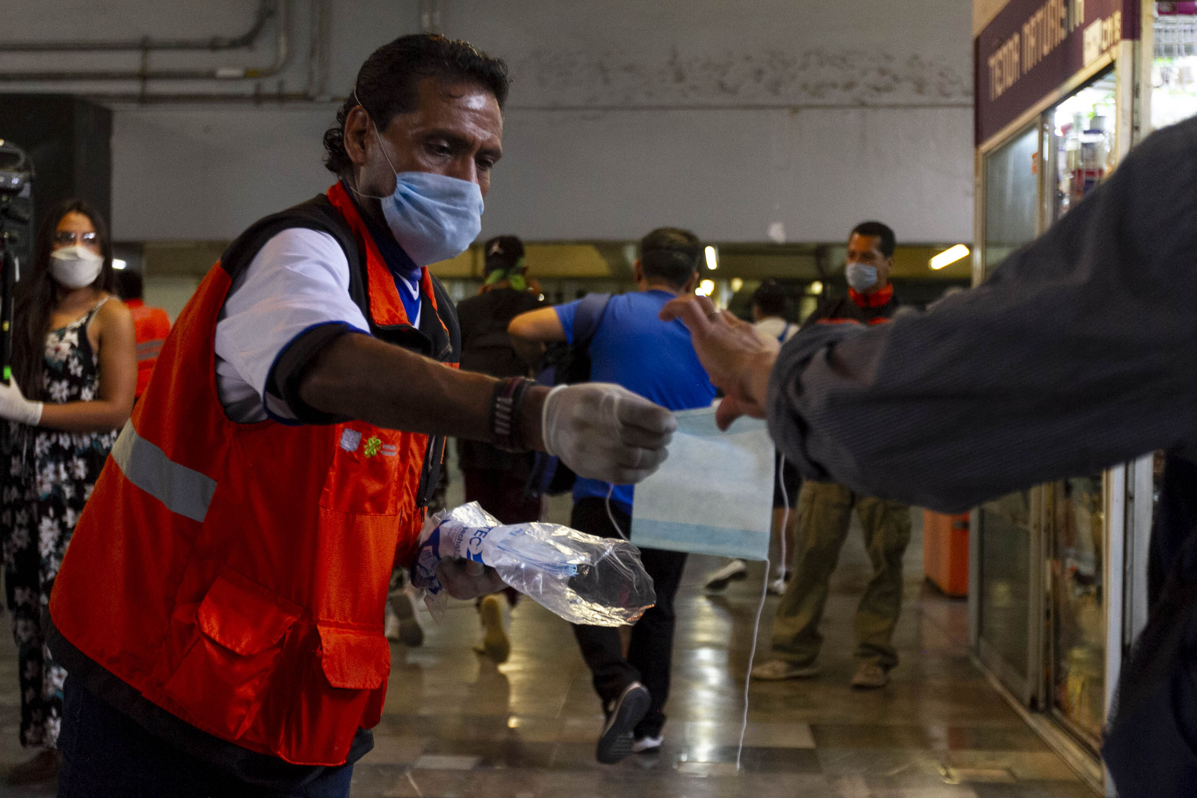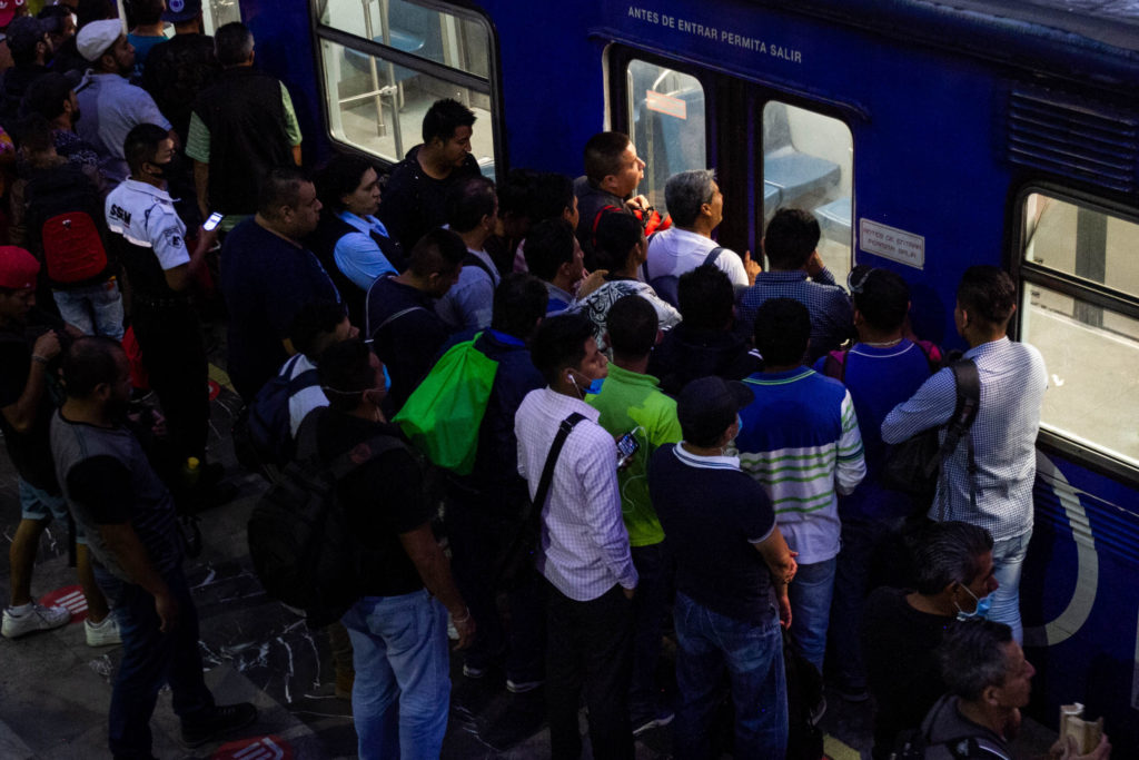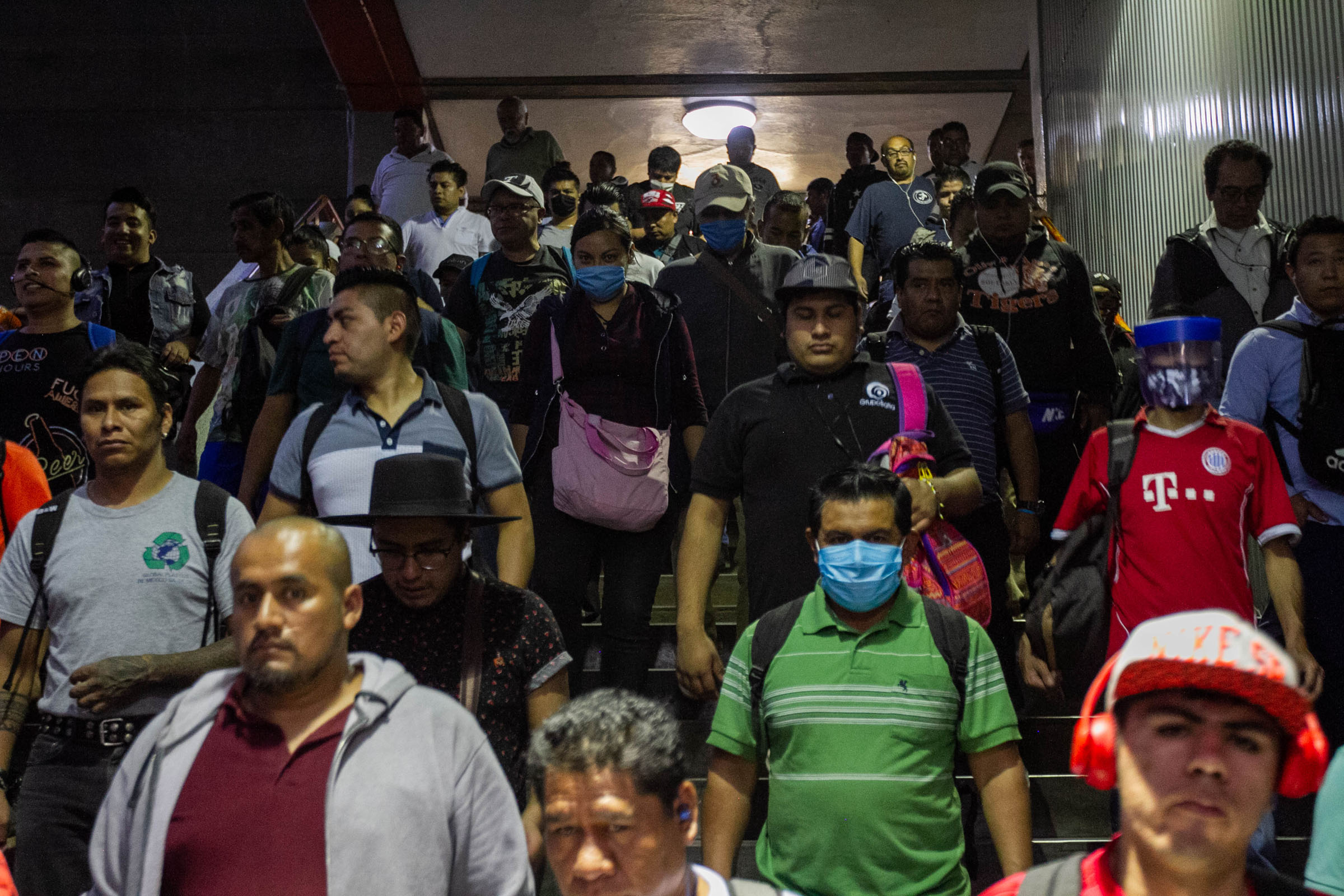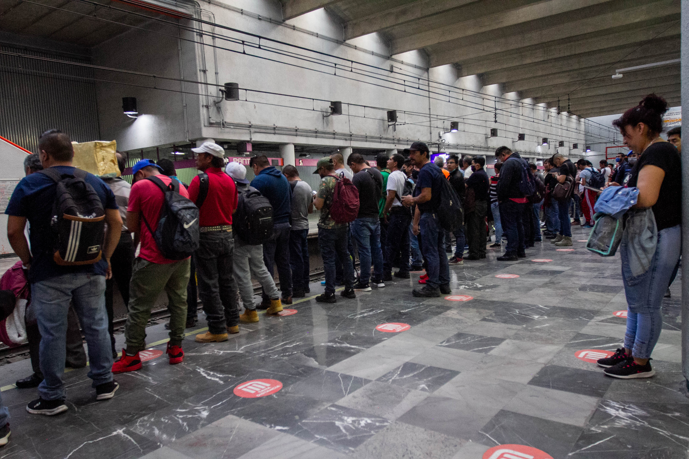 México.- En la estación Pantitlán del Metro se reporta una alta afluencia de usuarios, a pesar de las recomendaciones sanitarias de quedarse en casa.