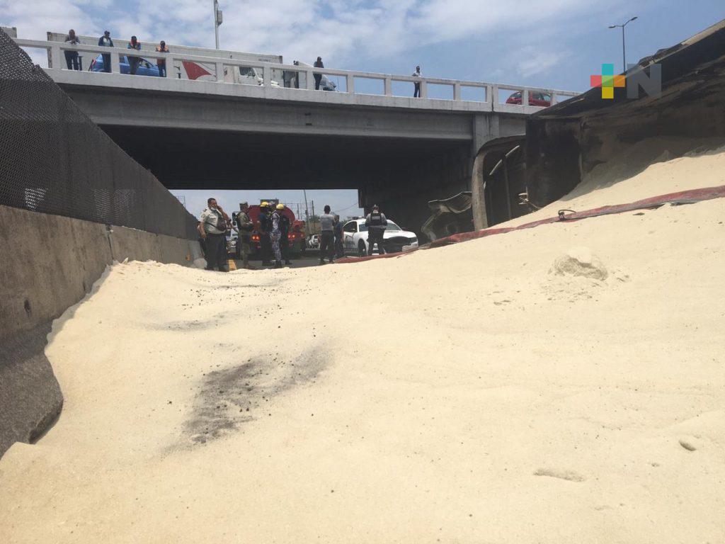 Saquearon camión volcado que transportaba azúcar en carretera Veracruz-Cardel