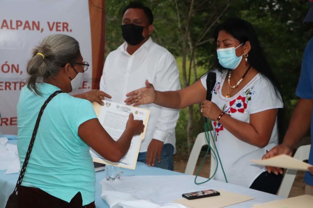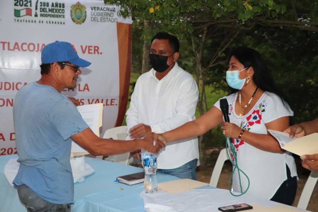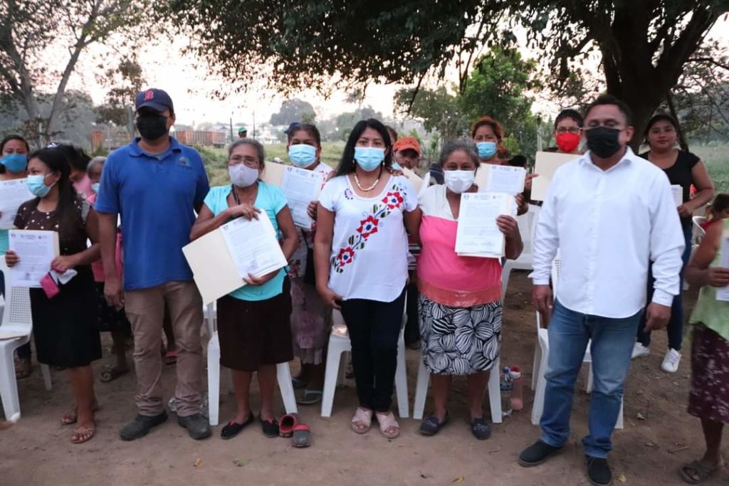 Tlacojalpan, Ver.- Se adjudicaron y entregaron lotes de predio urbano en la colonia Ampliación Gertrudis, en Tlacojalpan, por gestión del Ayuntamiento de esta demarcación, que preside la alcaldesa Clara Luz Domínguez Vargas.