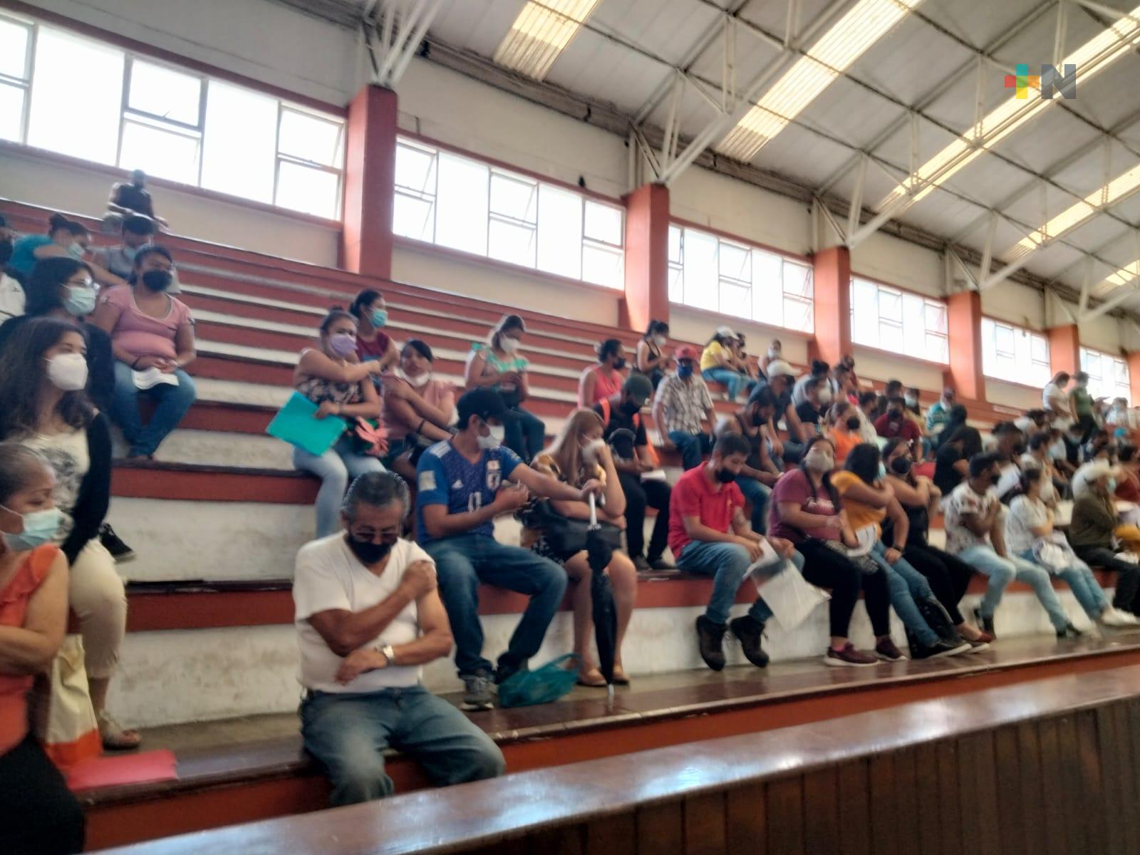 Coatepec, Ver.- Jóvenes de 18 a 29 años y personas mayores a esta edad que por alguna razón no pudieron acudir previamente a vacunarse contra Covid, acuden al gimnasio de Coatepec a recibir primeras y segundas dosis de vacuna AstraZeneca.