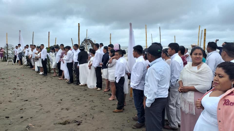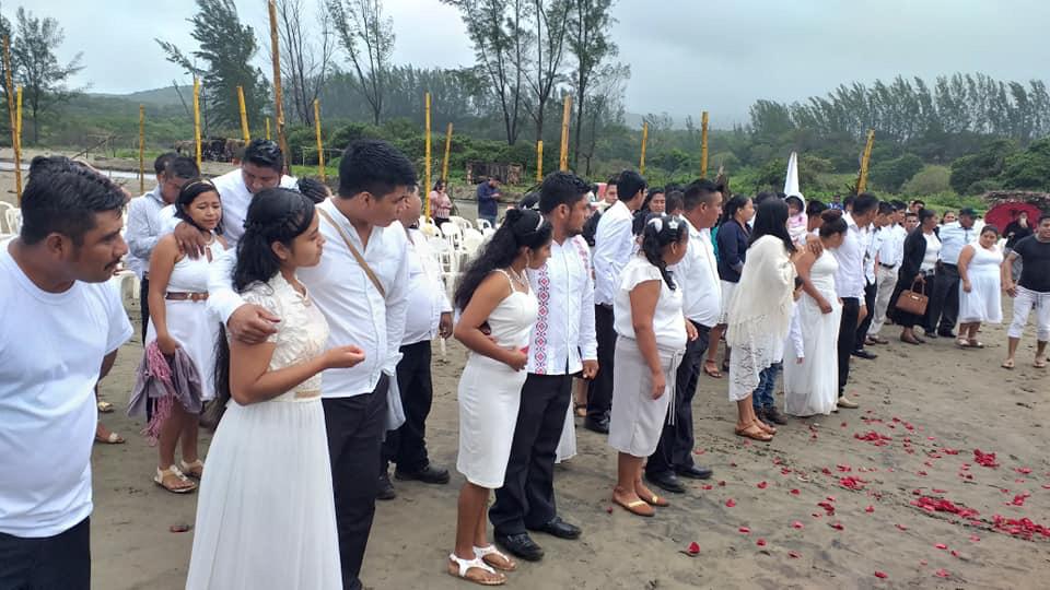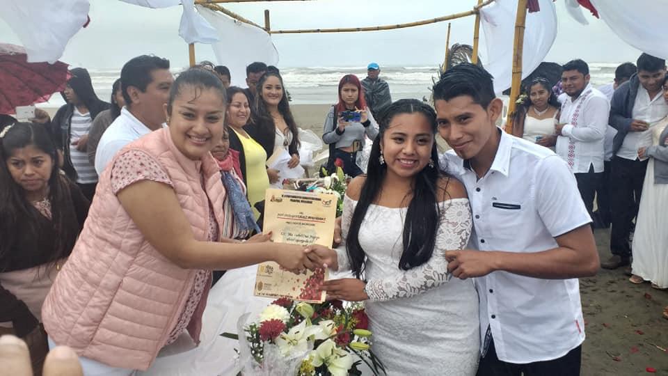 Coatzacoalcos, Ver.- A pesar de las condiciones meteorológicas, 50 parejas se unieron en legítimo matrimonio con el mar como testigo en las playas de Peña Hermosa, municipio de Pajapan, al sur de Veracruz.