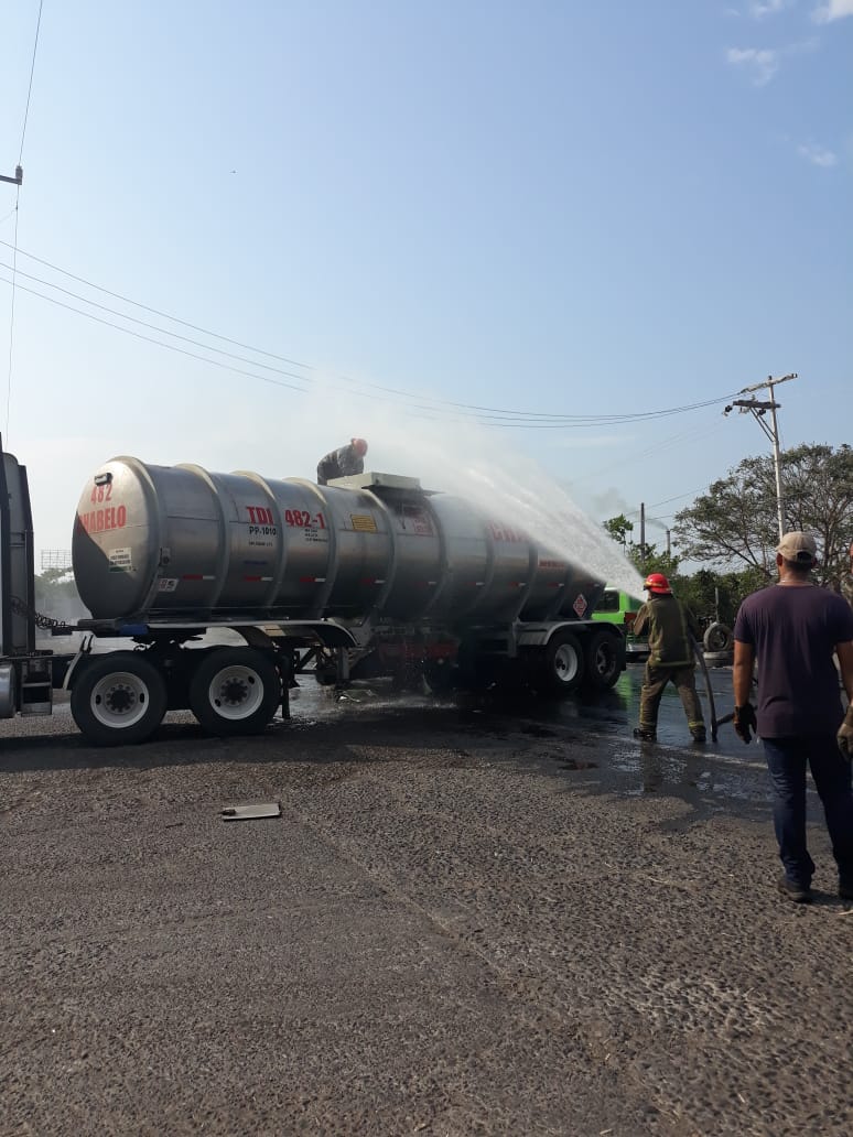 Cardel, Ver.- Respecto al accidente que se reportó en el entronque de entrada a Cardel, en la carretera federal Veracruz-Poza Rica, sucedido a las 13:40 hrs, se reporta que no hubo lesionados y se controló la fuga de combustible.