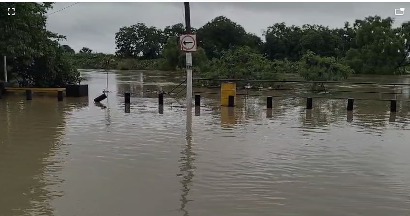 Se interrumpió el paso sobre la carretera federal San Rafael El Faro, ya que el agua del río pasaba sobre la cinta asfáltica a la altura del rancho «El Texano».