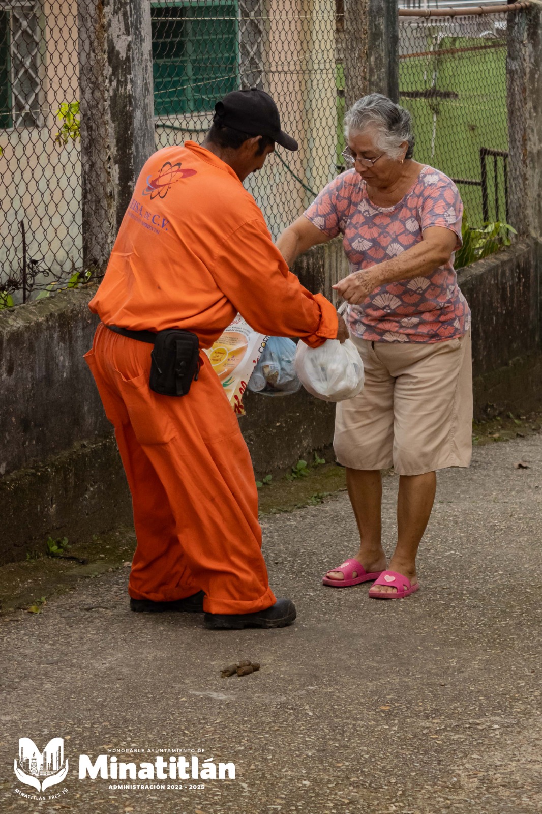 Minatitlán, Ver.- Siguiendo las instrucciones de la Presidenta Municipal, Carmen Medel Palma, personal de Limpia Pública continúa redoblando esfuerzos y con la mejor disposición de brindar un mejor servicio en la recolección de basura.