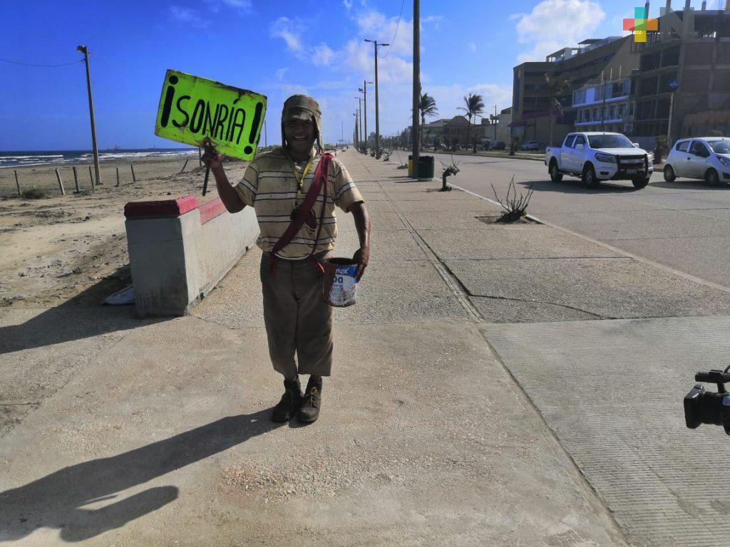 Llegó a Coatzacoalcos como parte de su recorrido en busca de llegar al puerto de Veracruz para participar en el carnaval, en el camino una moneda significativa para él un premio a lo que hace y suma para reunir para su pasaje y comidas.