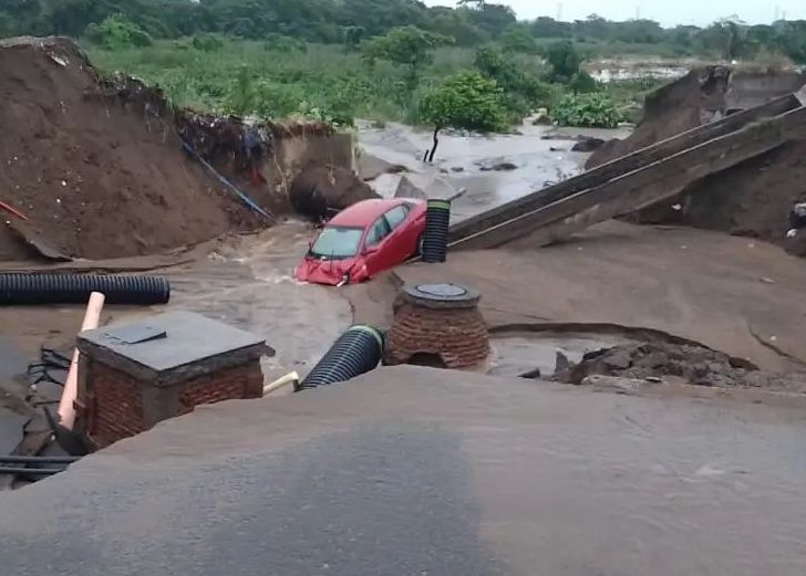 «Derivado de las lluvias registradas durante la madrugada y mañana de este jueves, se registran dos hundimientos en la zona norte del Puerto de Veracruz: En la calle de Río Rhin con Río Guadiana y Río Duero, en el fraccionamiento Lomas IV, en el que se vio afectado un vehículo sedán, y en Amatzinac esquina Texolo, en la colonia Torrentes, en el que se vio afectado un autobús de transporte urbano de la línea Herradura.