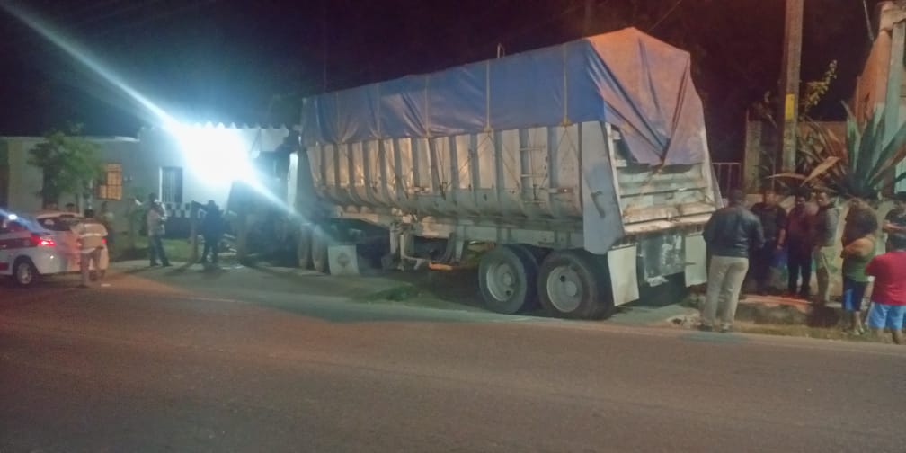 Cerca de las 21:00 horas de este lunes, la unidad de carga que se encontraba estacionada sobre la carretera que conduce al municipio de Chinameca, se fue en reversa debido a que el conductor olvidó poner el freno, impactando la oficina que se ubica a escazos 200 metros.