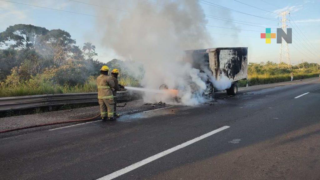 Se incendia camioneta de Maseca en autopista Cosoleacaque-Nuevo Teapa