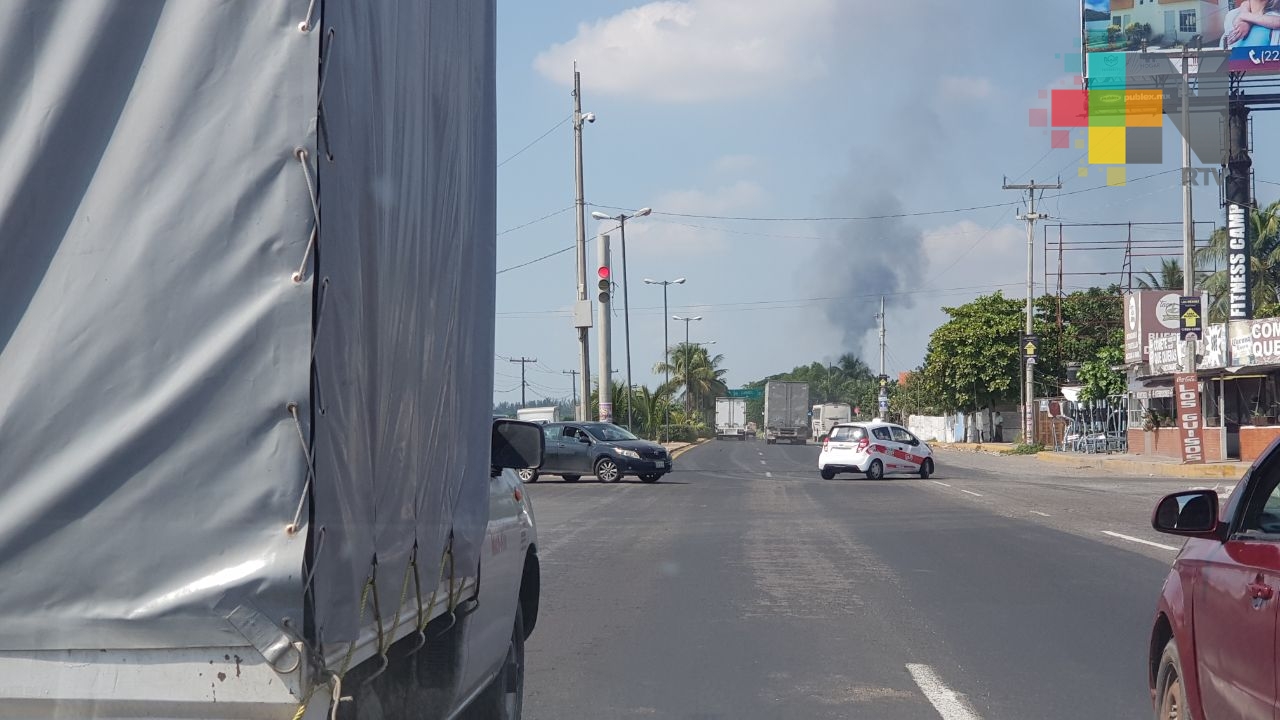 Veracruz, Ver.- En la zona del Nuevo Veracruz se registró un incendio en un tiradero de llantas y desechos de camiones.